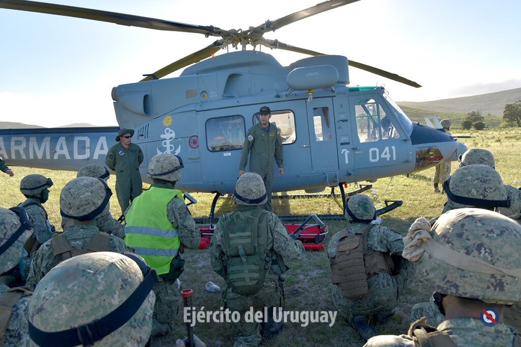 Se realizaron ejercicios de reconocimiento de eje, con apoyo de aeronave de ala rotatoria, helicóptero Agusta Bell – 412HP, de la Aviación Naval de la Armada Nacional.