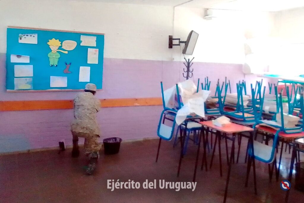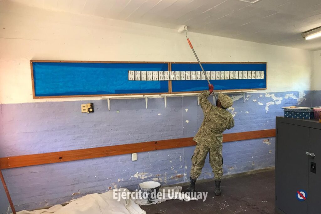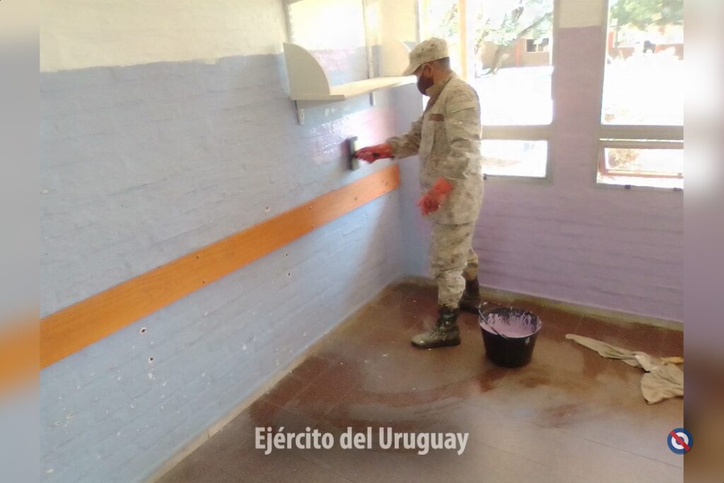 Mientras los escolares reciben clases virtuales, efectivos del Batallón “Oriental” de Infantería Mecanizado Nº 4 trabajaron durante una semana en el mantenimiento de la Escuela N° 49 “Solar del Charrúa”, ubicada en la ciudad de Colonia del Sacramento.