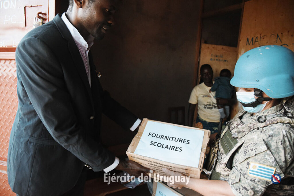 Al finalizar la recorrida por las instalaciones, nuestros Cascos Azules realizaron una donación de útiles escolares para los estudiantes.