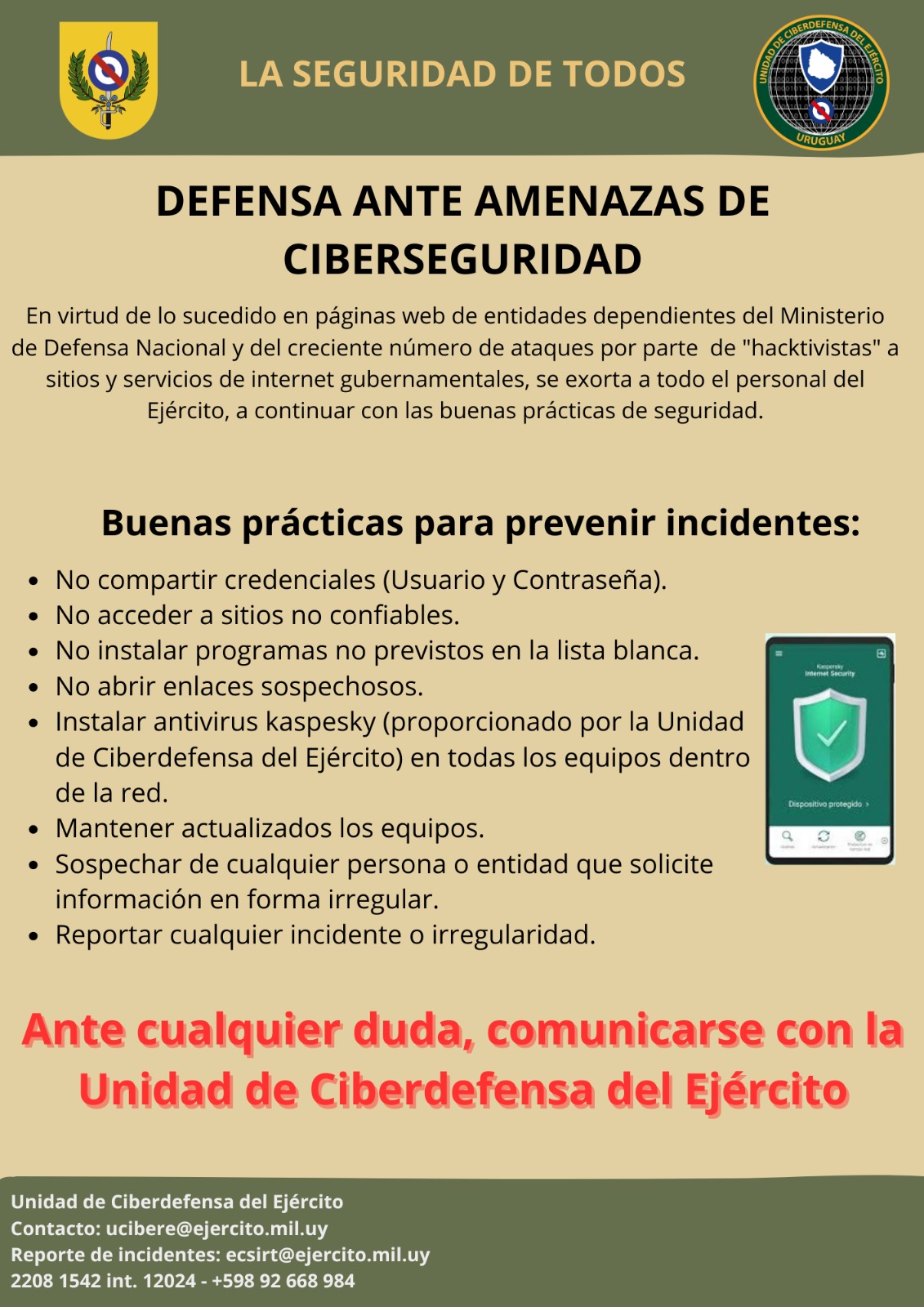 La Unidad de Ciberdefensa del Ejército, diseñó una campaña de concientización sobre Ciberseguridad, denominada «La seguridad de todos».
