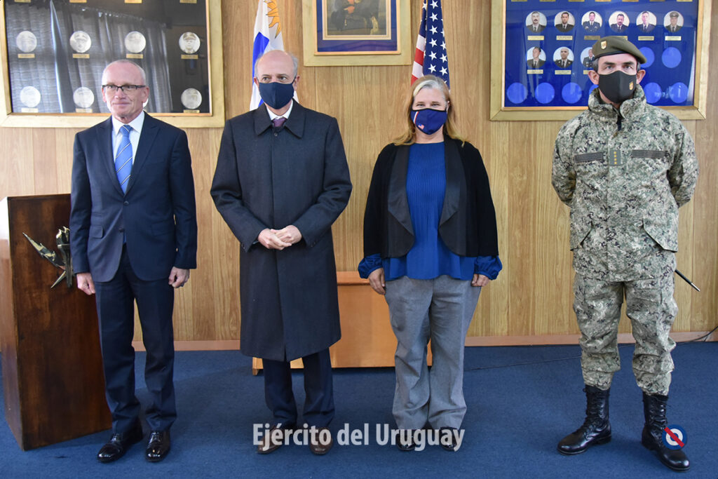 Nuestro Ejército recibió la donación por parte del Comando Sur de los Estados Unidos, de 21 dispositivos inhibidores de señal “Jammer”. La ceremonia se realizó en el Batallón de Apoyo y Servicios de Comunicaciones Nº 2, con la presencia del Sr. Ministro de Defensa Nacional, Dr. Javier García, el Sr. Comandante en Jefe del Ejército, Gral. de Ejército Gerardo Fregossi y la Encargada de Negocios de la Embajada de los Estados Unidos, Sra. Jennifer Savage.