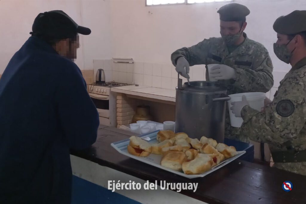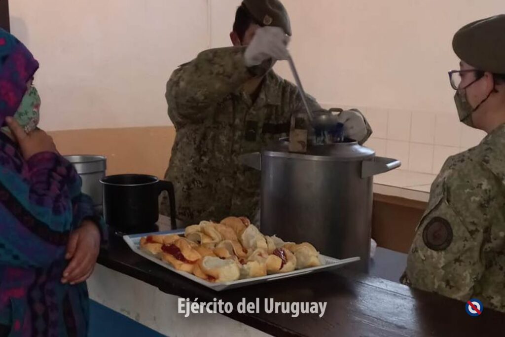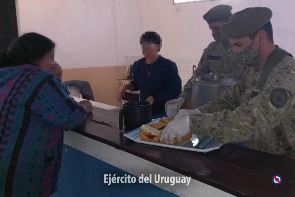 Desde el martes 14 de setiembre, efectivos del Regimiento «Gral. Aparicio Saravia» de Caballería Mecanizado N° 7 confeccionan y distribuyen desayuno y merienda a las 6 familias que fueron evacuadas en la ciudad de Río Branco, tras la creciente del caudal del Río Yaguarón y se encuentran alojadas en el Gimnasio Municipal.