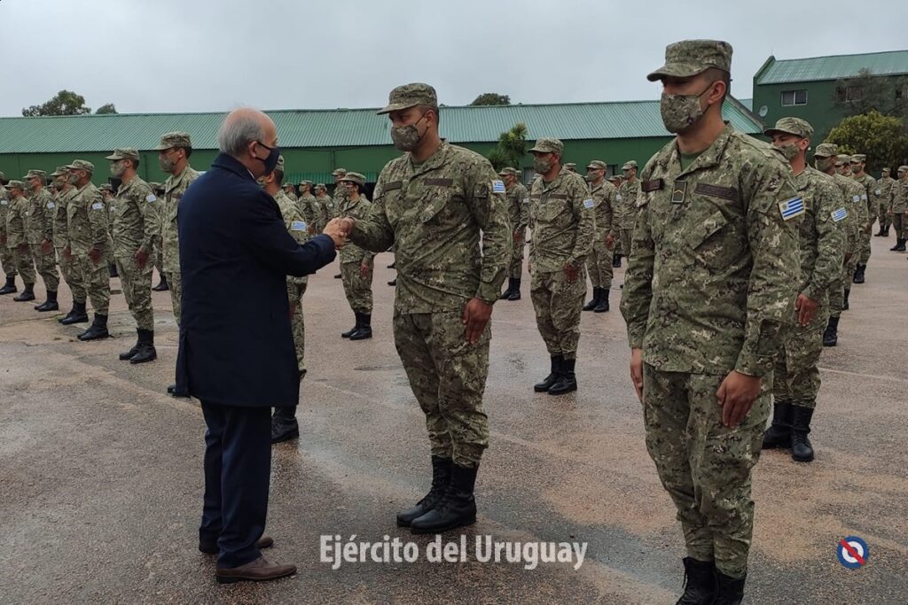 El Ministro de Defensa Nacional junto al Comandante en Jefe del Ejército, saludaron a los 198 efectivos de la Fuerza y 3 funcionarios de OSE, que parten hoy hacia la República Democrática del Congo, quienes integrarán el Batallón «Uruguay IV» en la Misión United Nations Mission in the DR Congo – Monusco.