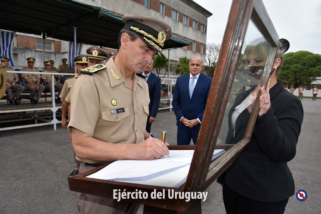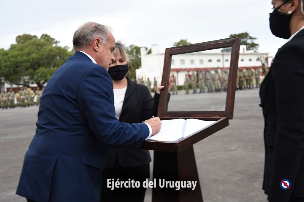 Luego, el Sub Secretario del MDN junto al Comandante en Jefe del Ejército, Jefe del Estado Mayor de la Defensa, Dtor. Gral. del Sistema de Enseñanza del Ejército, Dtor. del IMAE y Dtor. de Formación Militar del MDN, firmaron el libro de actas por el cual se da por clausurado el periodo lectivo 2021.