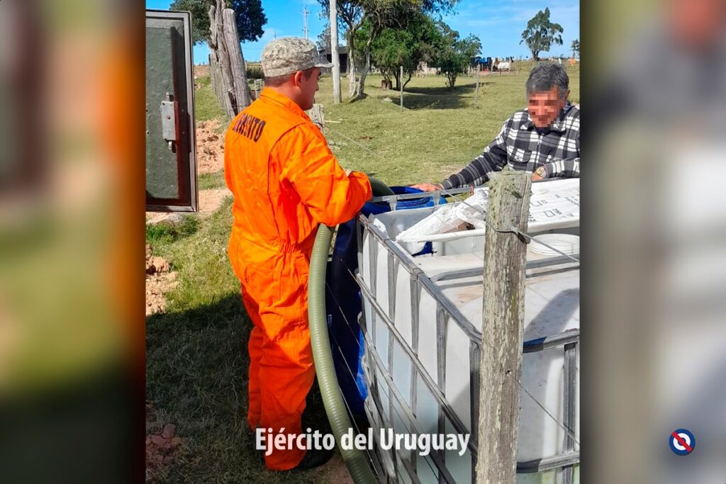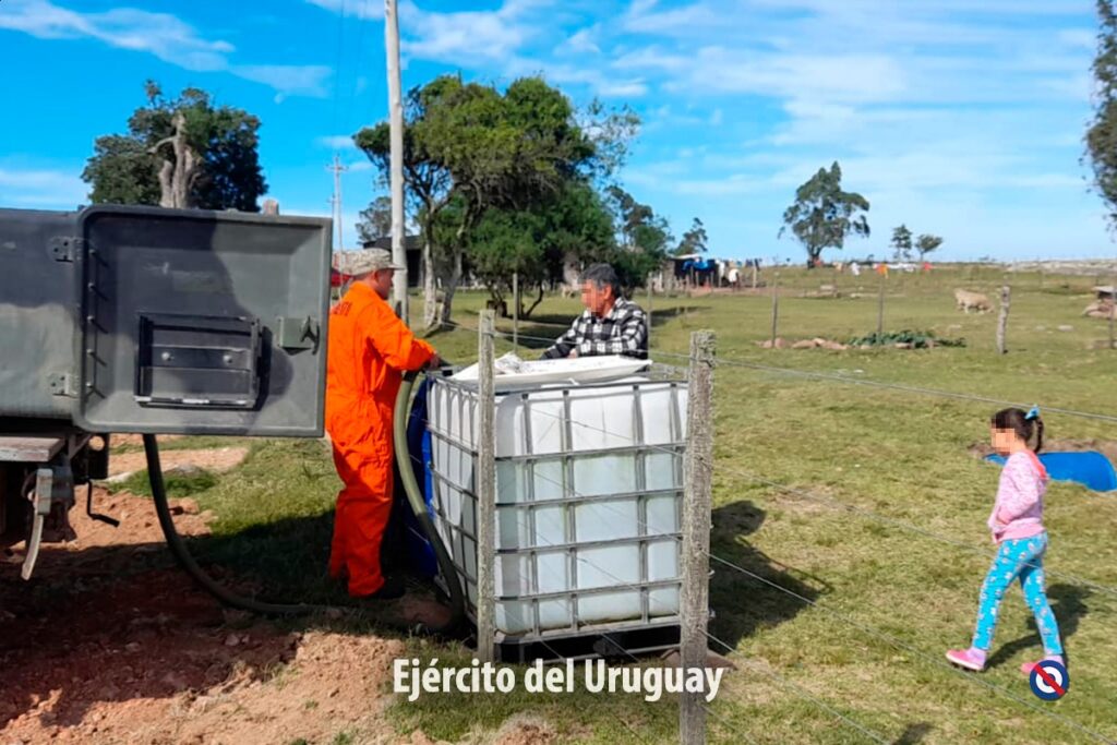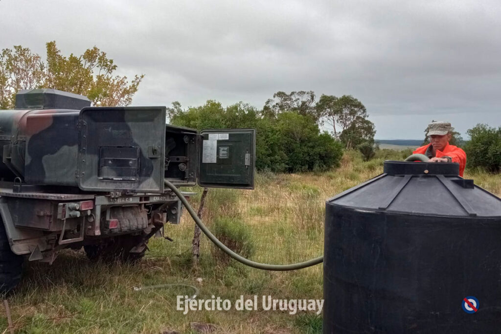 El Regimiento «Dragones Libertadores» de Caballería Mecanizado Nº 9 apoyó con la distribución de agua potable (1.200 litros), a una familia que vive en el Poblado “La Esperanza”, ubicado a 3 km de la Unidad, ya que este lugar no cuenta con el suministro de OSE.