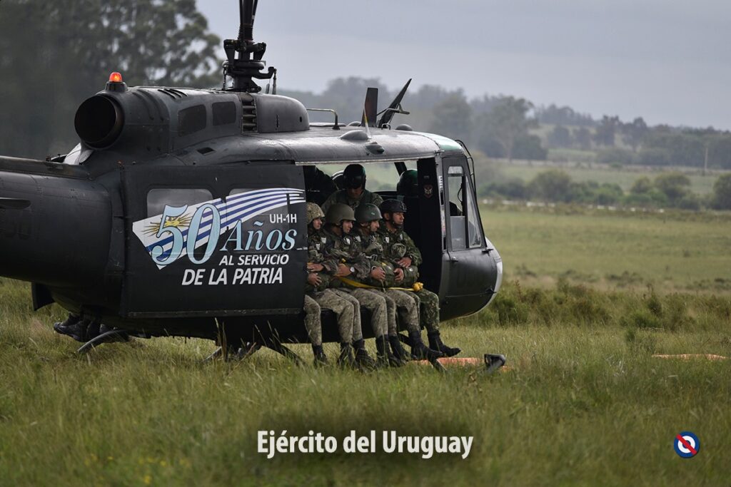 Los efectivos saltaron equipados a una altura de 8000 pies, desde el helicóptero UH-1H perteneciente al Escuadrón Aéreo Nº 5 (Helicópteros) Fuerza Aérea Uruguaya.