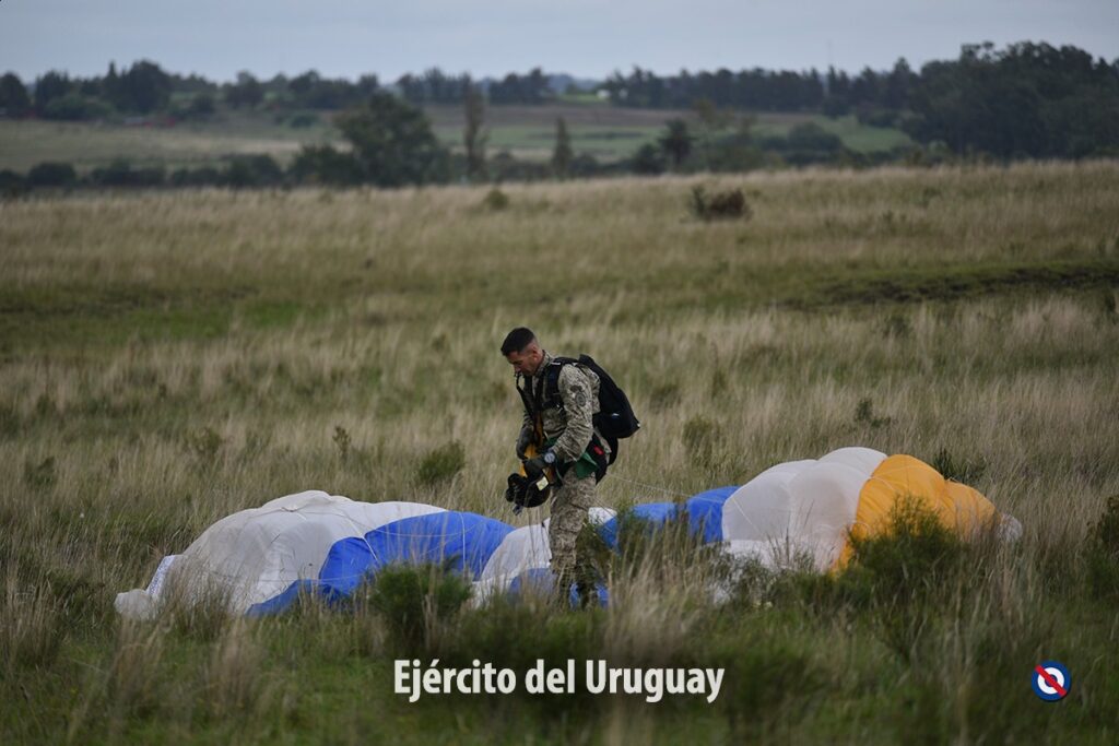En la mañana de hoy, efectivos del Ejército Nacional, Armada Nacional y Fuerza Aérea Uruguaya, graduados del Centro de Instrucción de Paracaidistas y Operaciones Especiales de Ejército realizaron una demostración de actividades, materiales y capacidades de paracaidismo militar en el dpto. de Canelones.