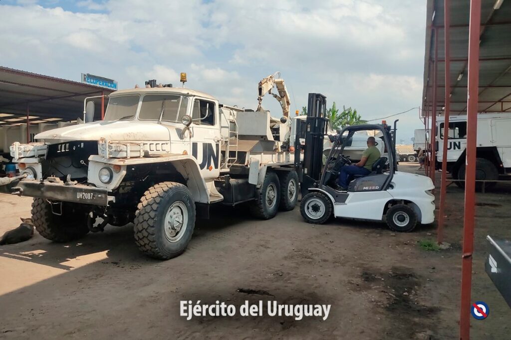 Días atrás, el «Batallón Uruguay IV» (URUBATT), desplegado en la República Democrática del Congo, recibió la visita de los inspectores de Contingent Owned Equipment (COE), que analizan el estado, mantenimiento y operatividad de los medios materiales e instalaciones de la Base, en todo lo que refiere al Equipamiento Mayor y Auto Sostenimiento.