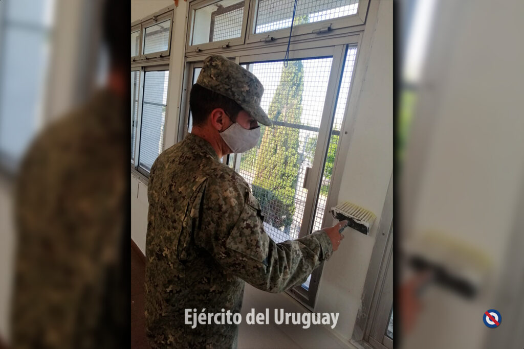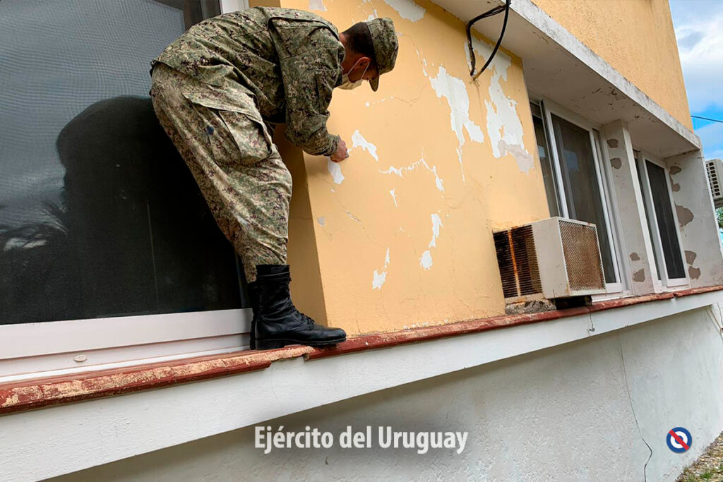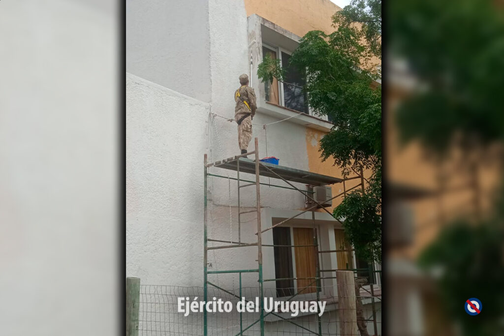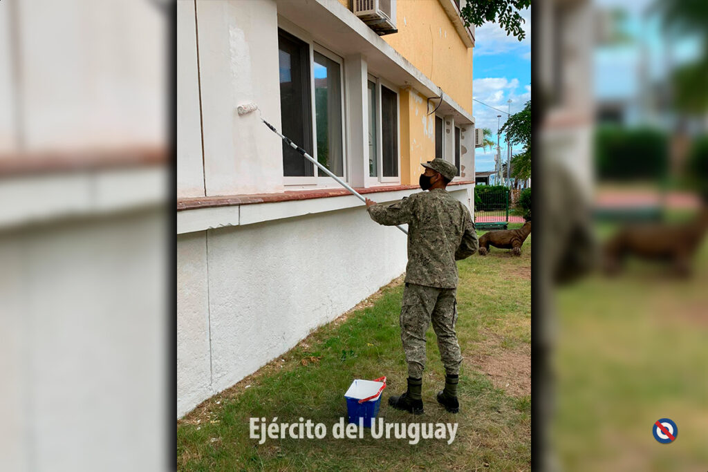 Efectivos del Batallón “Cnel. Ventura Alegre” de Ingenieros de Combate Nº4, realizaron mantenimiento de pintura en la fachada de la Escuela N° 5 “Alejandro y Samuel Lafone” de Punta del Este.