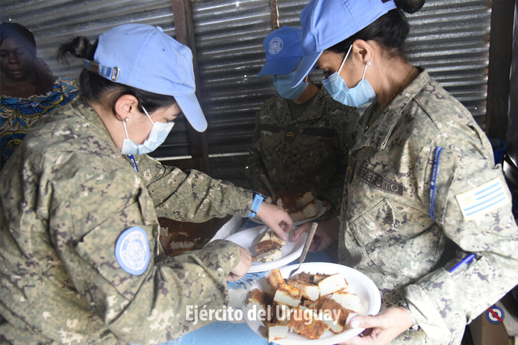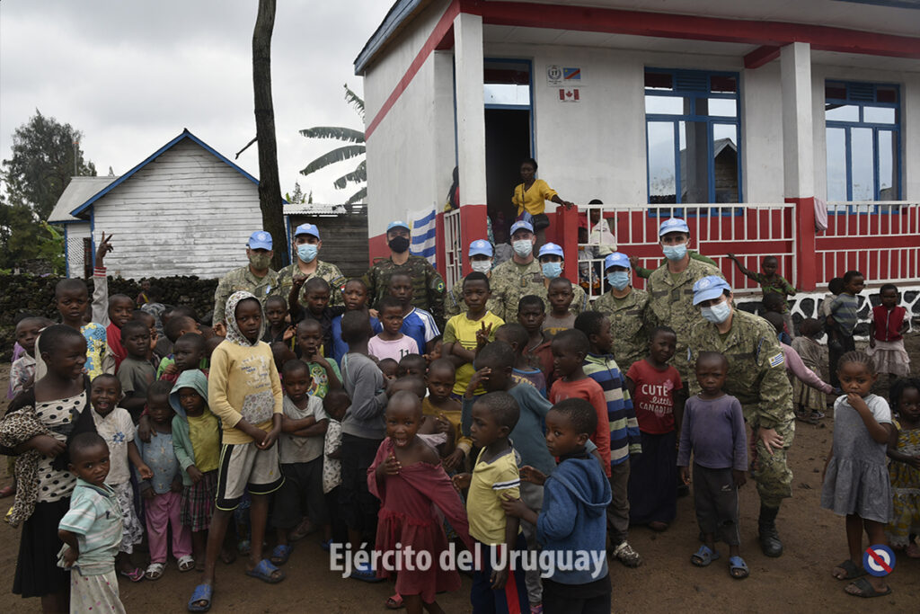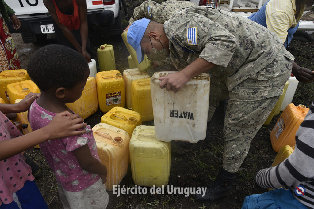 El pasado sábado, el Batallón «Uruguay IV» desplegado en la República Democrática del Congo (URUBATT), realizó una donación de 500 litros de agua potable y alimentos para 120 niños.