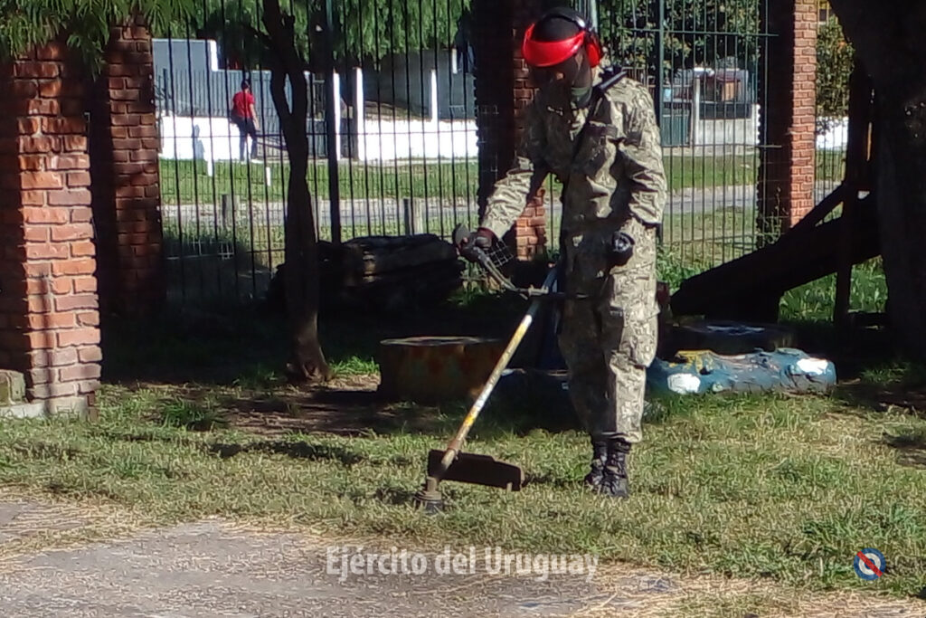 En el marco de las actividades de la Operación Soldado Amigo, el Grupo de Artillería N5 (dpto. de Montevideo) apoyó con efectivos y maquinaria al Hogar de Ancianos “Amelia Ruano de Schiaffino” en tareas de poda y limpieza de árboles.