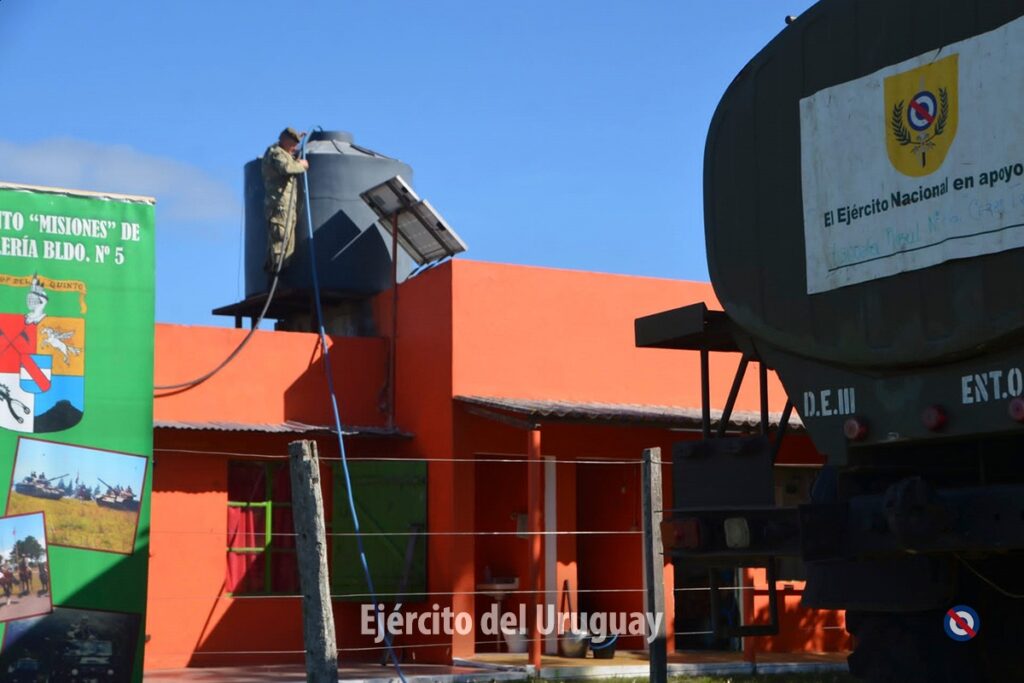 El pasado 19 de mayo, el Regimiento «Misiones» de Caballería Blindado Nro. 5 apoyó con agua potable a la Escuela Rural Nº 76 en la región “Cerro Travieso” (dpto. de Tacuarembó).