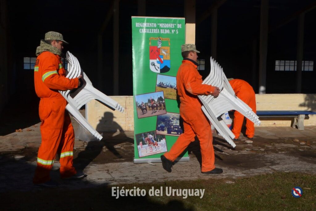 Por su parte, el Regimiento «Misiones» de Caballería Blindado Nro. 5 apoyó con personal en la limpieza y acondicionamiento de las instalaciones de la Asociación Rural de #Tacuarembó.