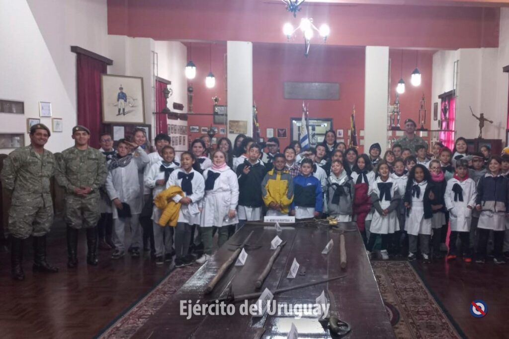 El pasado 18 de mayo, en el marco de las celebraciones del 211º aniversario de la «Batalla de las Piedras y “Día del Ejército Nacional”, el Regimiento de Caballería Mecanizado Nº3 UY recibió la visita de maestros y 120 niños de las Escuelas Nº 9, 111 y 115.
