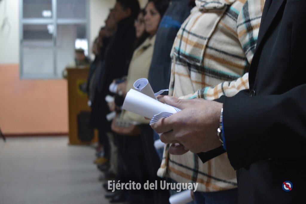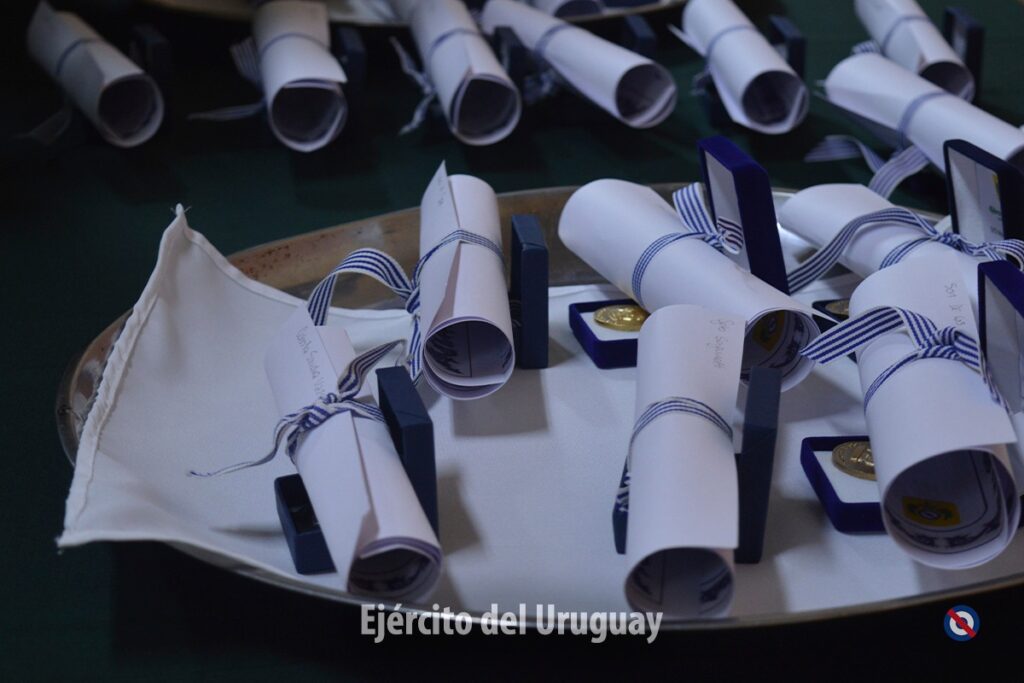 El Sr. Comandante en Jefe del Ejército, Gral. de Ejército Gerardo Fregossi, entregó diplomas y reconocimientos a los 21 efectivos presentes, acompañado del Jefe del Estado Mayor del Ejército, Gral. Luis Mangini y el Comandante del Cuartel General, Tte. Cnel. Abelardo González.