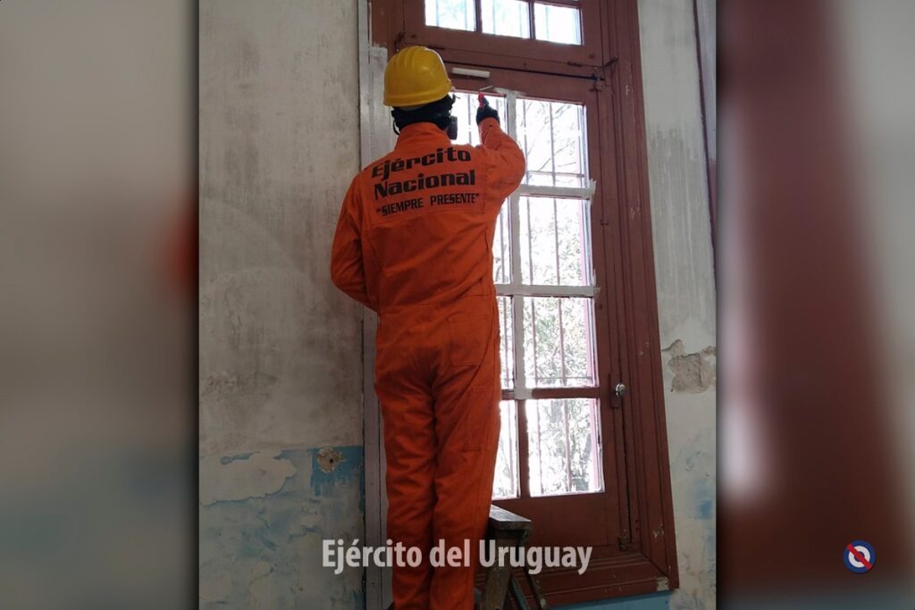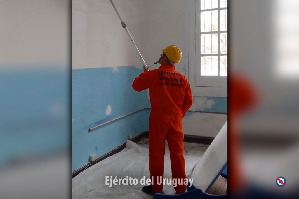 Por su parte, el Grupo «Las Piedras» de Artillería 105mm Nº 3 de 105 (Tacuarembó) apoyó con efectivos a la Escuela Nº 109 en tareas de pintura.