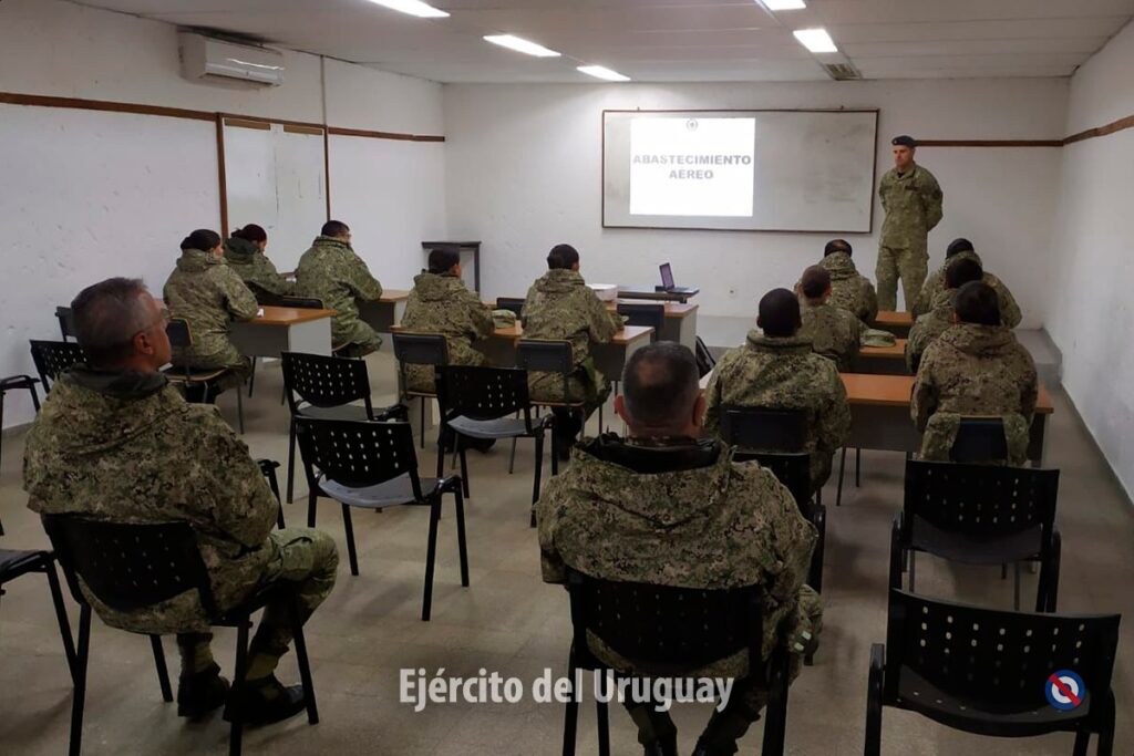 Se inició con una clase teórica, para los procedimientos del abastecimiento aéreo en operaciones aeroterrestres, a cargo de un instructor con la especialidad de Jefe de Salto Militar.