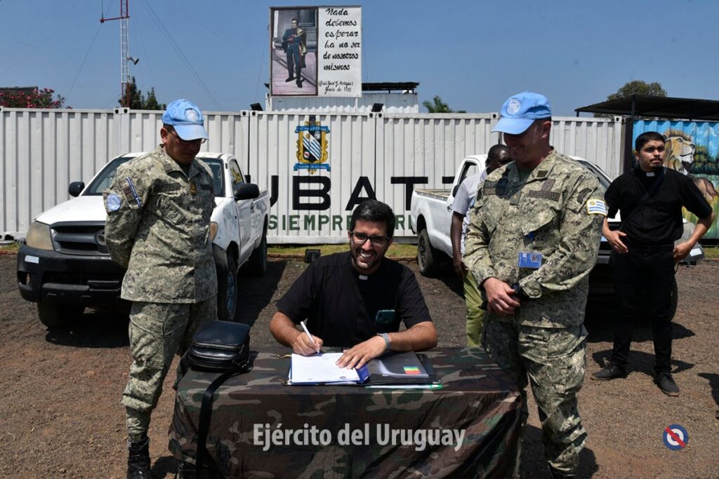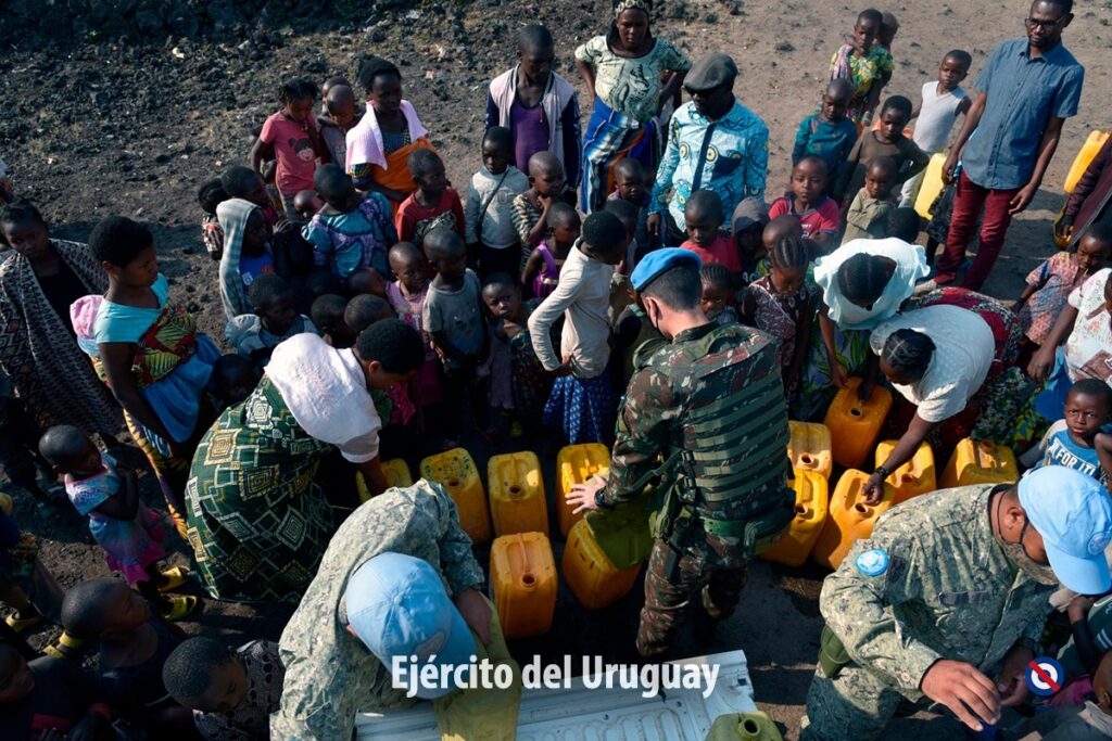La semana pasada, el Batallón «Uruguay IV» (URUBATT), desplegado en la República Democrática del Congo, realizó una donación de 400 litros de agua potable