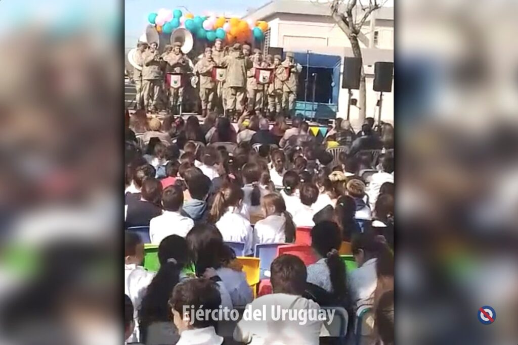 La Banda de Músicos de la Brigada de Caballería N° 2 (Melo), participó del acto por el 144° aniversario de la Escuela N° 7 «Laura Silva de Maciel».