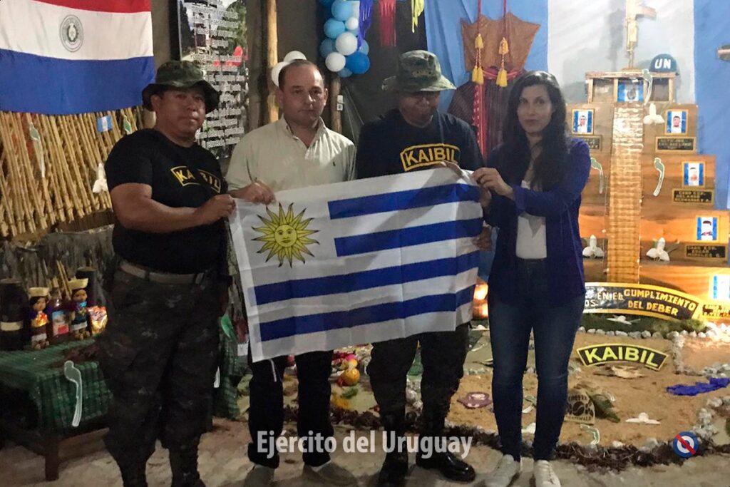 Posteriormente, el Jefe de la Oficina de Asuntos Civiles del URUBATT, Cap. (Apy. – Ed. Fís.) Carlos Da Silva, hizo entrega del Pabellón Nacional al Comandante de la GUASFOR. De esta manera, nuestro símbolo patrio lucirá en la galería de banderas de los Kaibiles, junto a otros países contribuyentes de la MONUSCO.