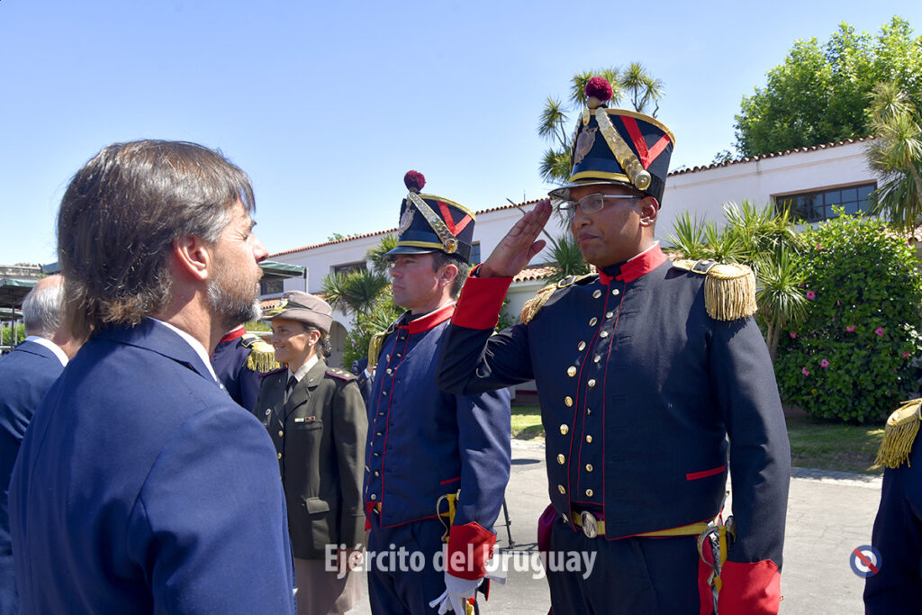El Sr. Presidente de la República, Dr. Luis Lacalle Pou, acompañado de la Sra. Sub Secretaria del Ministerio de Educación y Cultura, Dra. Ana Ribeiro y el Sr. Jefe del Regimiento, Cnel. Eduardo Balbi, hicieron entrega de los reconocimientos a los alumnos.