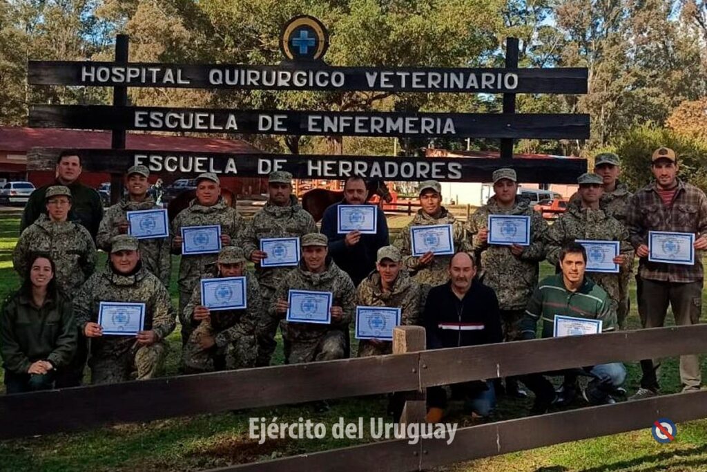 𝟯- 𝗰𝘂𝗿𝘀𝗼 𝗱𝗲 𝗛𝗲𝗿𝗿𝗮𝗱𝗼𝗿 – en este curso homologado por el Ministerio de Educación y Cultura, participaron 12 alumnos militares y 3 civiles. Durante la etapa teórica, se hace énfasis en la podología equina y en la etapa práctica se trabaja en la forja (confección de herraduras) y el herrado (trabajo en los cascos de los caballos).