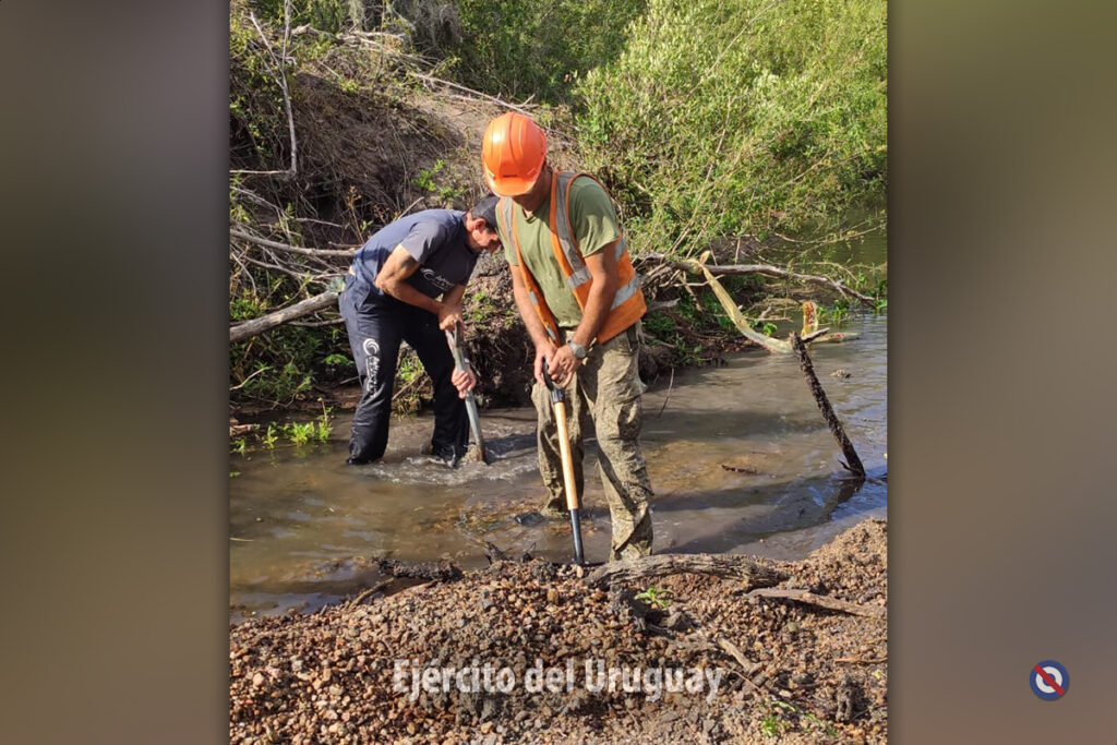 El Regimiento «Tte. Gral. Pablo Galarza» de Caballería Blindado Nº 2, realizó tareas de limpieza de malezas y ensanchamiento en el cauce del Río Yí, para aumentar el caudal en la toma de agua de OSE de la ciudad de Sarandí del Yí (Durazno).
