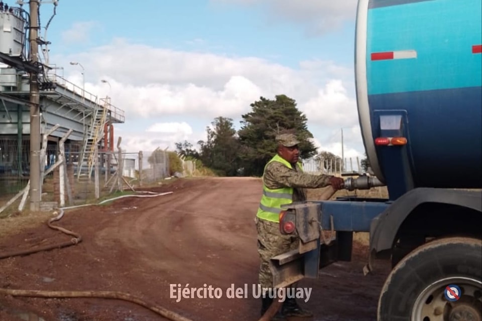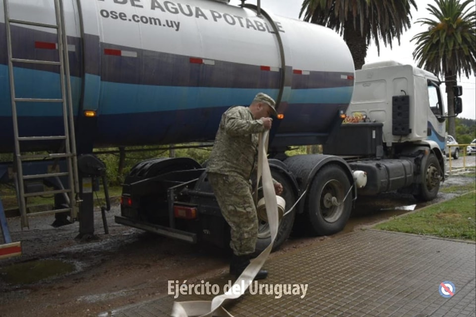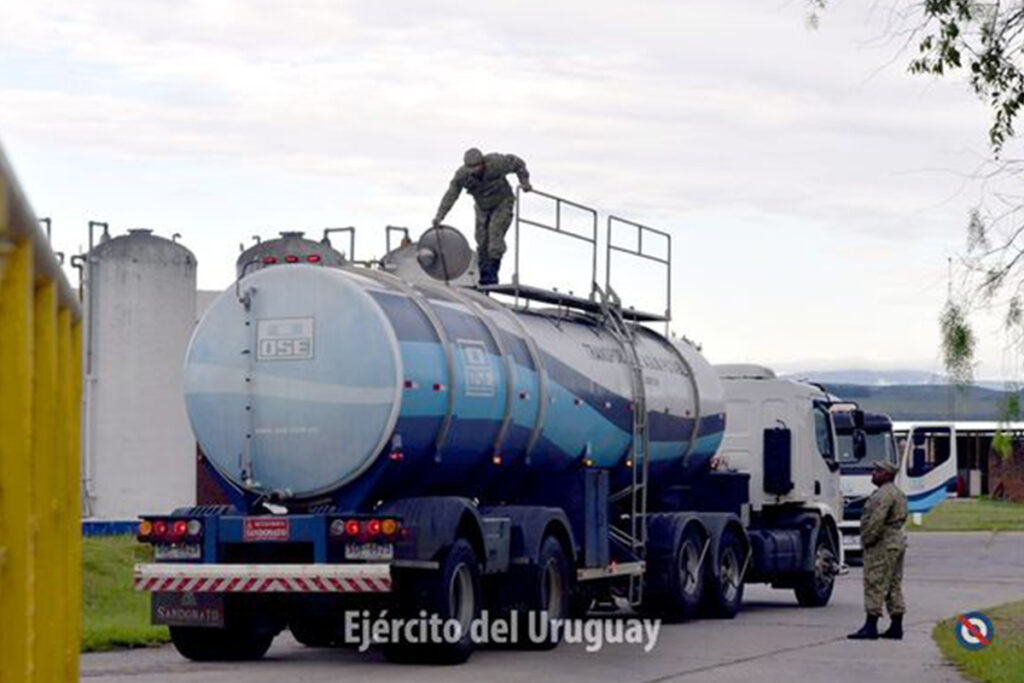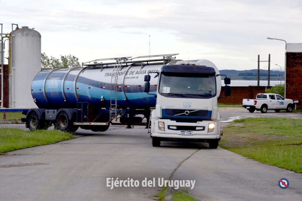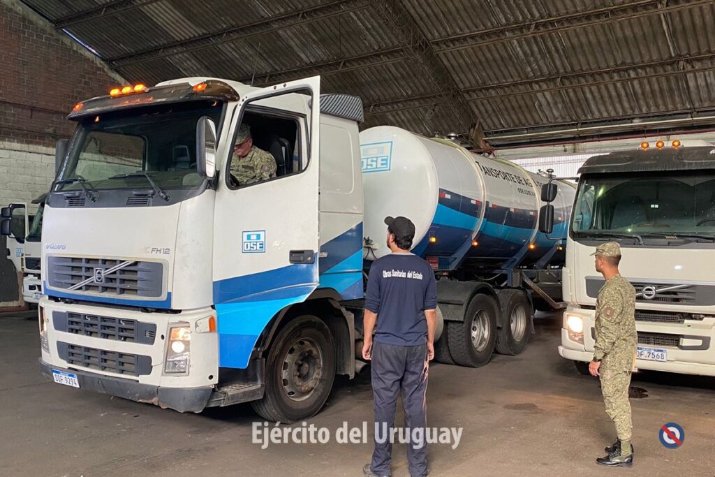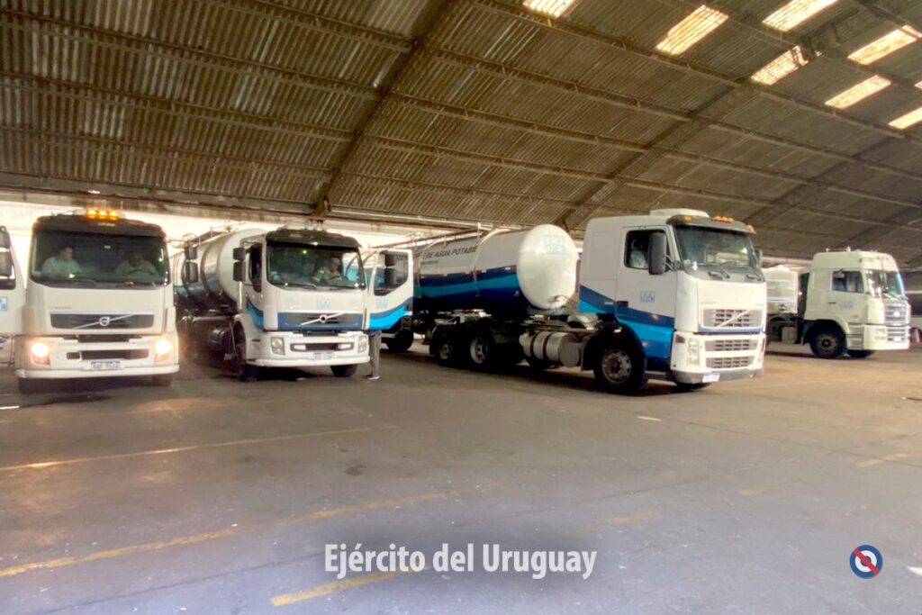 En la mañana del 15 de marzo, en el marco de las tareas para mitigar el déficit hídrico, el Ejército Nacional recibió por parte de OSE cuatro camiones cisterna con la capacidad de trasladar 30.000 litros de agua cada uno.