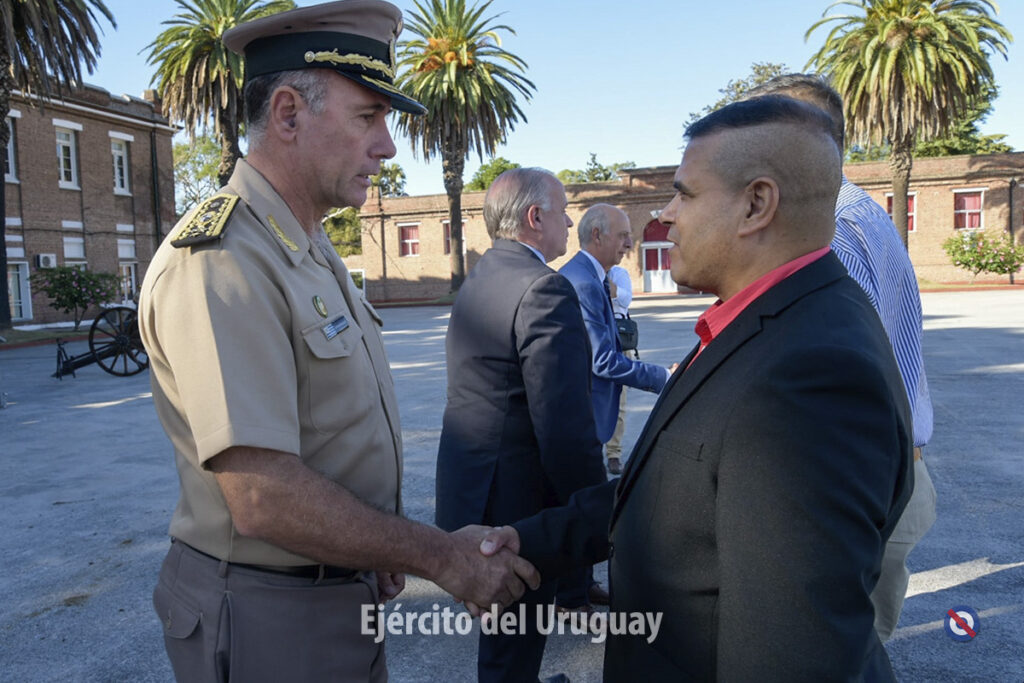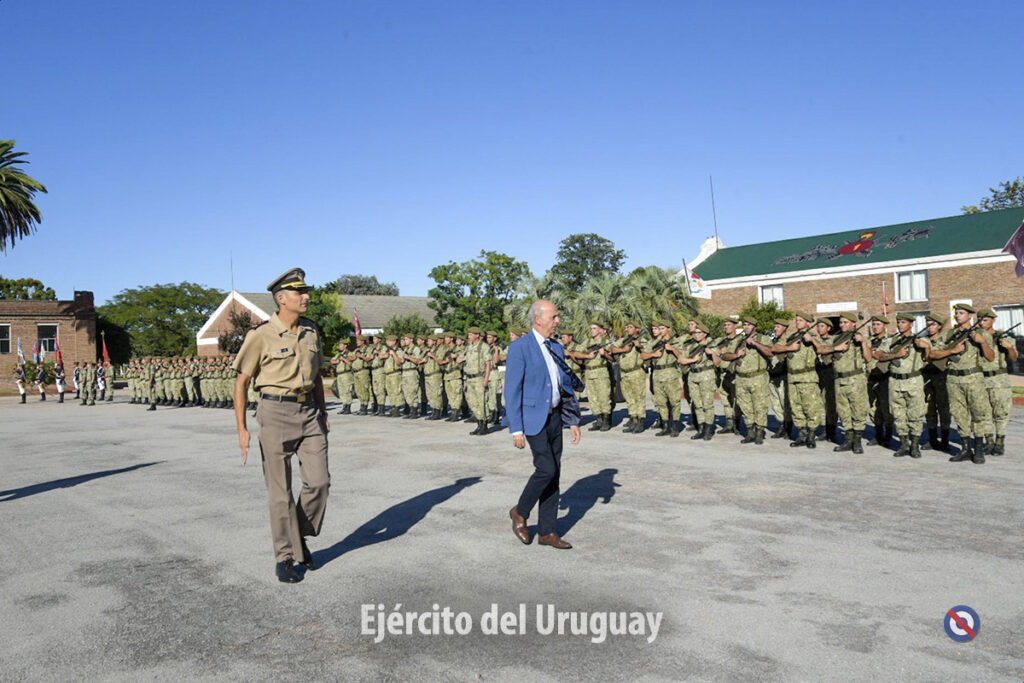 En primera instancia, el Sr. Ministro de Defensa Nacional, Dr. Javier García, acompañado del Jefe de la Unidad, Tte. Cnel. Diego Jordán pasaron revista a los efectivos formados.