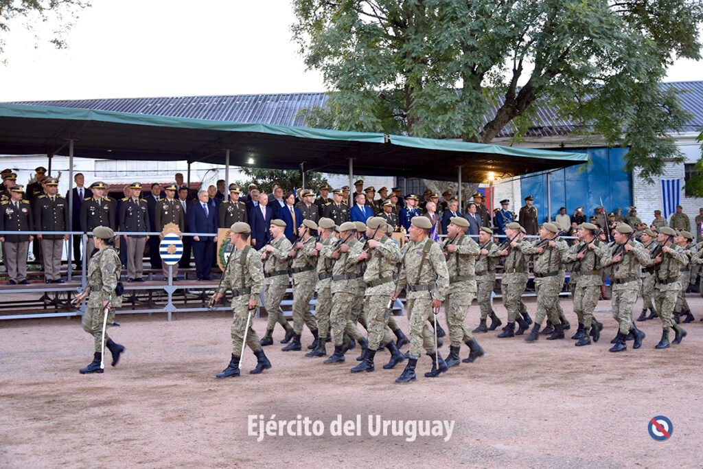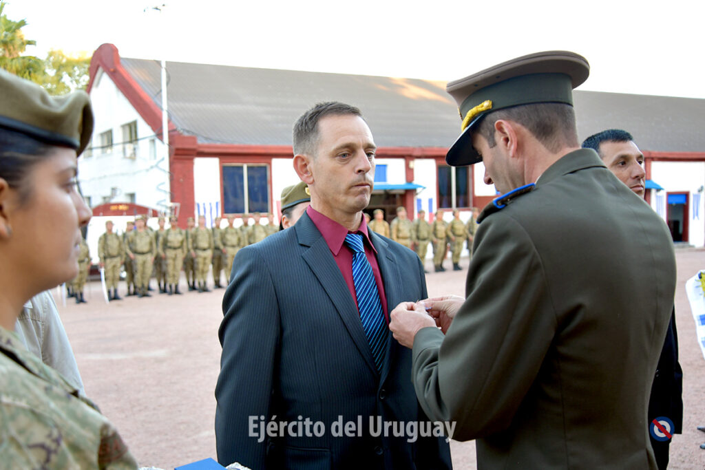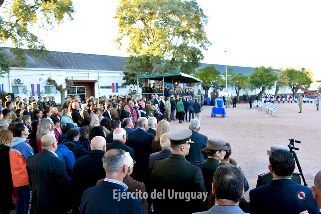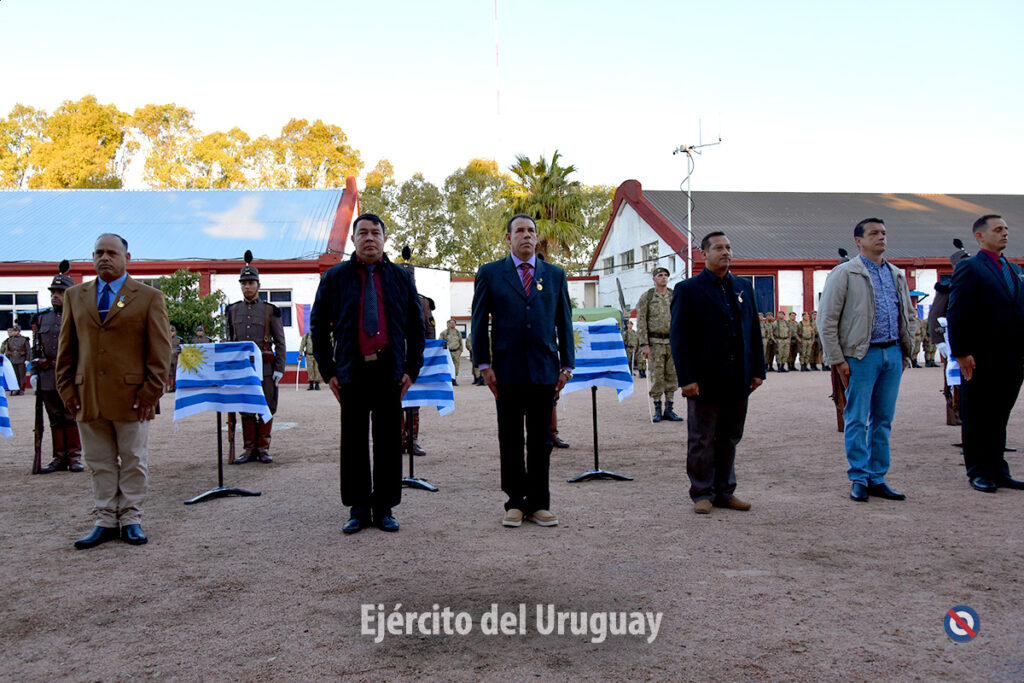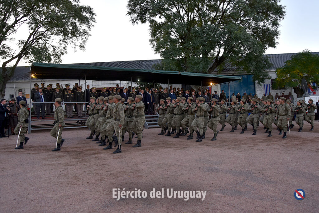 En el comienzo, el Pte. de la ROU y el Sr. Jefe del Batallón, Tte. Cnel. Renato Lantes, pasaron revista a los efectivos formados. Luego, se invitó a los presentes a entonar las estrofas del Himno Nacional. Posteriormente, se distinguió con la medalla al Mérito Militar al Pabellón de Guerra de la Unidad.