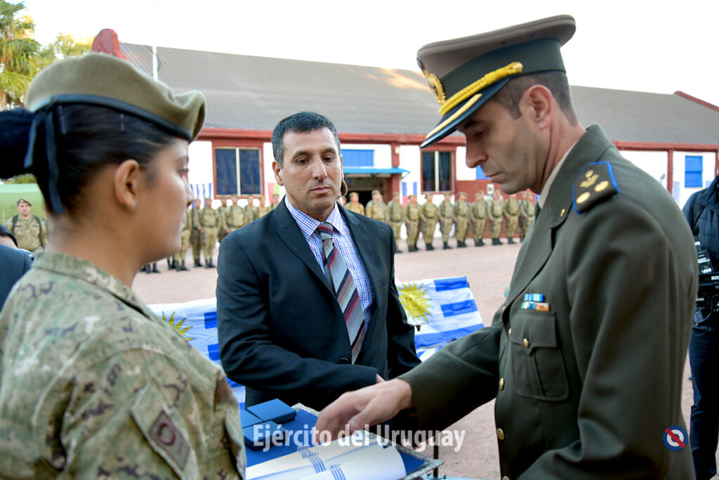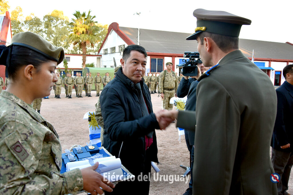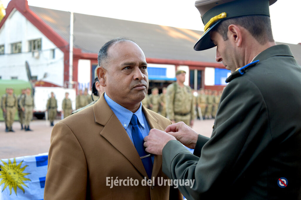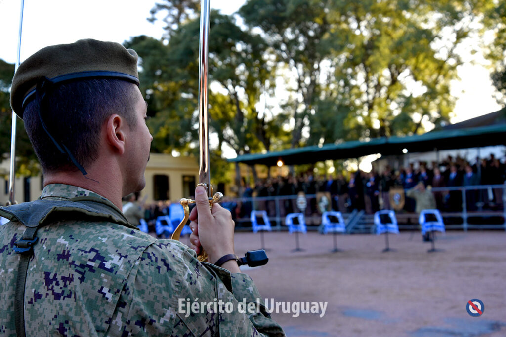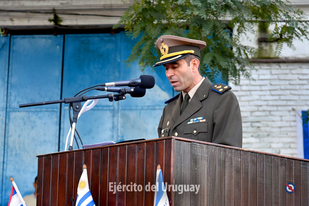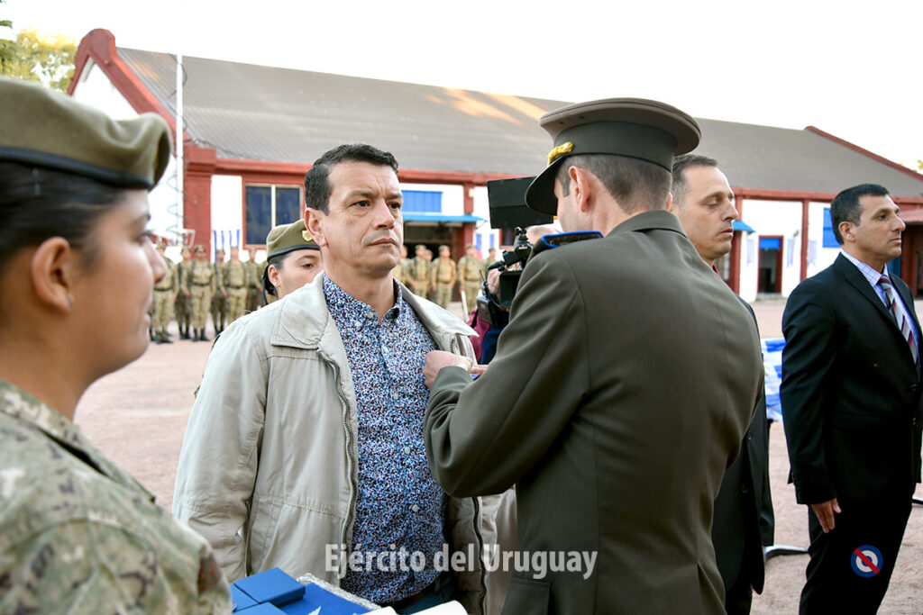 En el comienzo, el Pte. de la ROU y el Sr. Jefe del Batallón, Tte. Cnel. Renato Lantes, pasaron revista a los efectivos formados. Luego, se invitó a los presentes a entonar las estrofas del Himno Nacional. Posteriormente, se distinguió con la medalla al Mérito Militar al Pabellón de Guerra de la Unidad.
