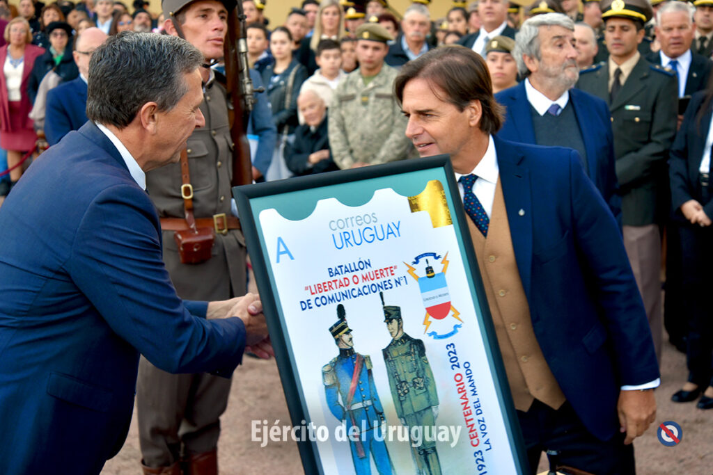 Esta tarde, con la presencia del Sr. Presidente de la República, Dr. Luis Lacalle Pou y el Sr. Comandante en Jefe del Ejército, Gral. de Ejército Mario Stevenazzi, se realizó la ceremonia por los 100 años del Batallón «Libertad o Muerte» de Comunicaciones Nº 1 (Montevideo).
