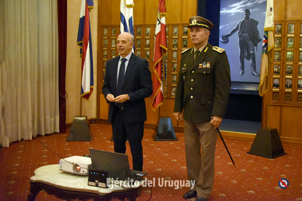A través de una conexión simultánea, los efectivos desplegados en el exterior recibieron un saludo por parte del Sr. Ministro de Defensa Nacional y del Sr. Comandante en Jefe del Ejército.