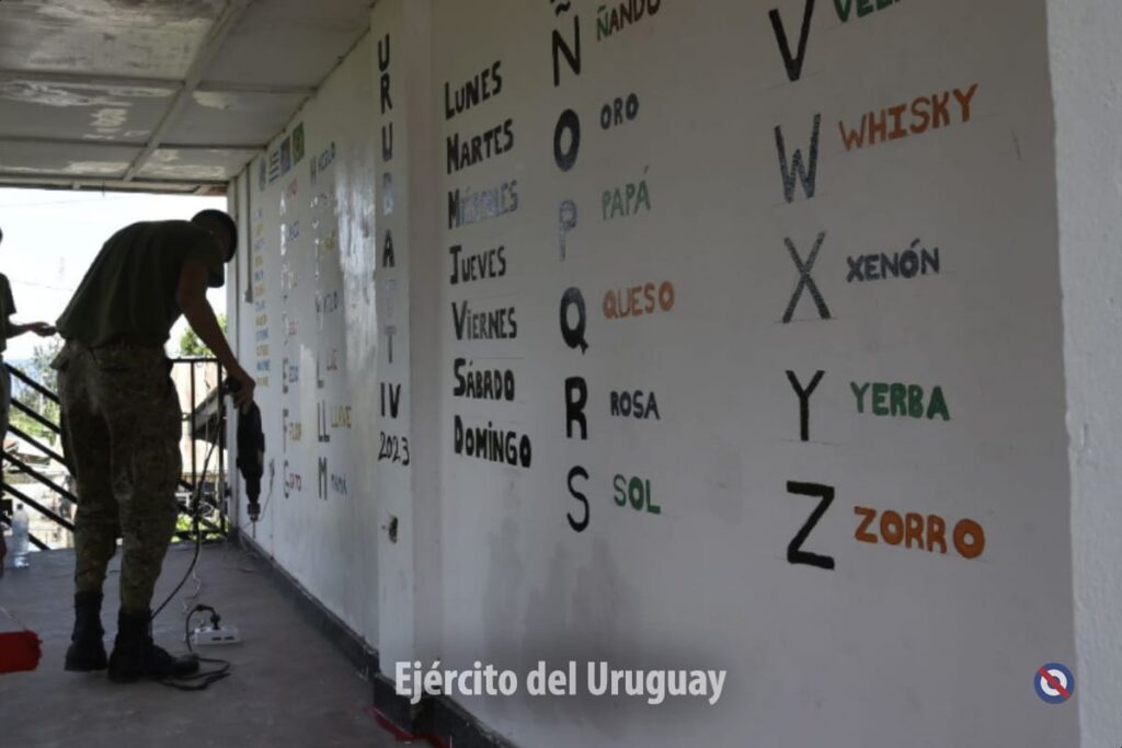 Para finalizar la jornada, se inauguró un aula escolar, donde se enseña idioma español, la cual fue mejorada por efectivos del Batallón, y que a partir de hoy, lleva el nombre de «Aula José Gervasio Artigas».