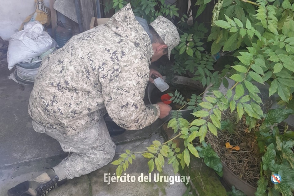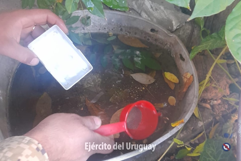 Mientras que integrantes del Regimiento «Gral. Aparicio Saravia» de Caballería Mecanizado N° 7, hicieron relevamiento larvario en Río Branco. Una de las tareas más importantes que realizó el personal fue la desactivación del foco, colocando larvicidas o eliminando el contenido del recipiente.