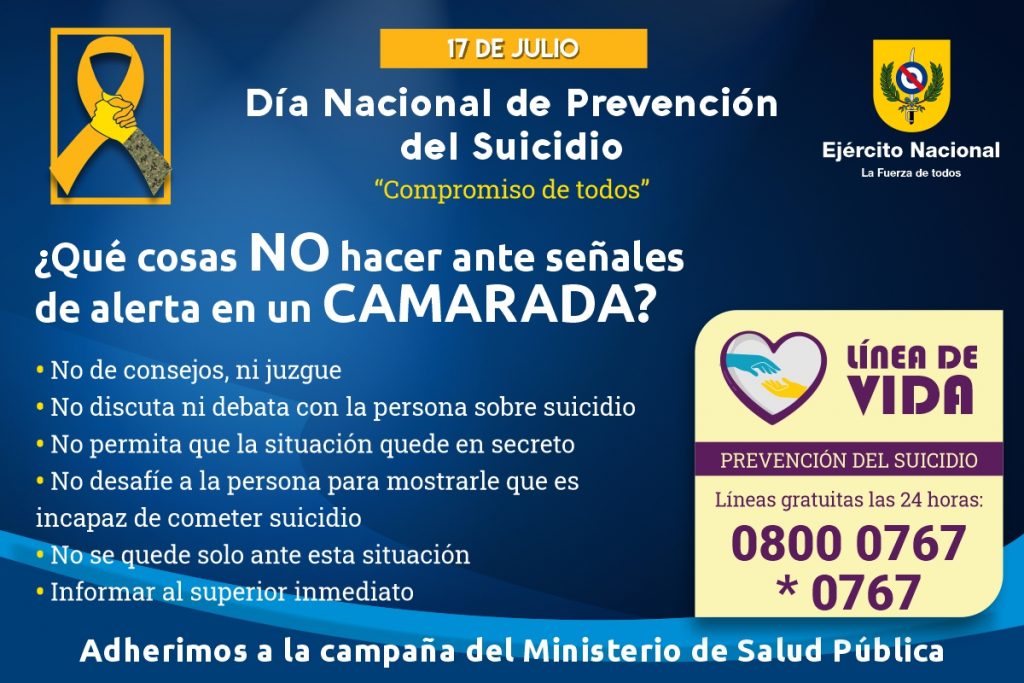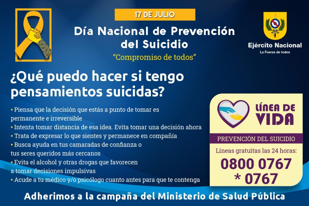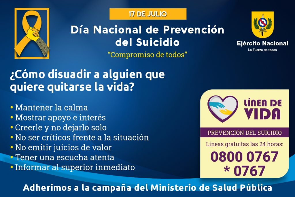 El Ejército Nacional se adhiere al Día Nacional para la Prevención del Suicidio, que se conmemora cada 17 de julio en nuestro país.