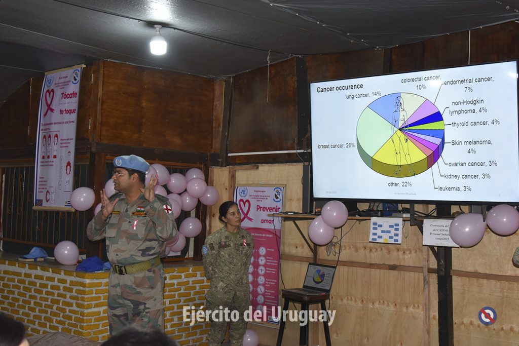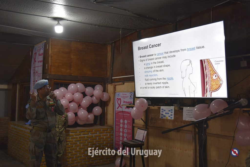 El 19 de octubre, se conmemora el Día Mundial del Lucha Contra el Cáncer de Mama, por tal motivo, el Equipo de Unidades Médicas del Batallón «Uruguay IV» desplegado en la República Democrática del Congo, organizó una charla informativa dirigida a los efectivos, para enseñar sobre la prevención de esta enfermedad.