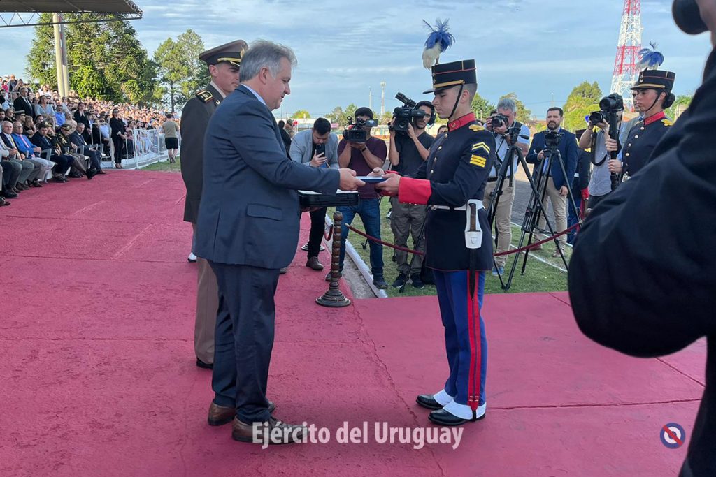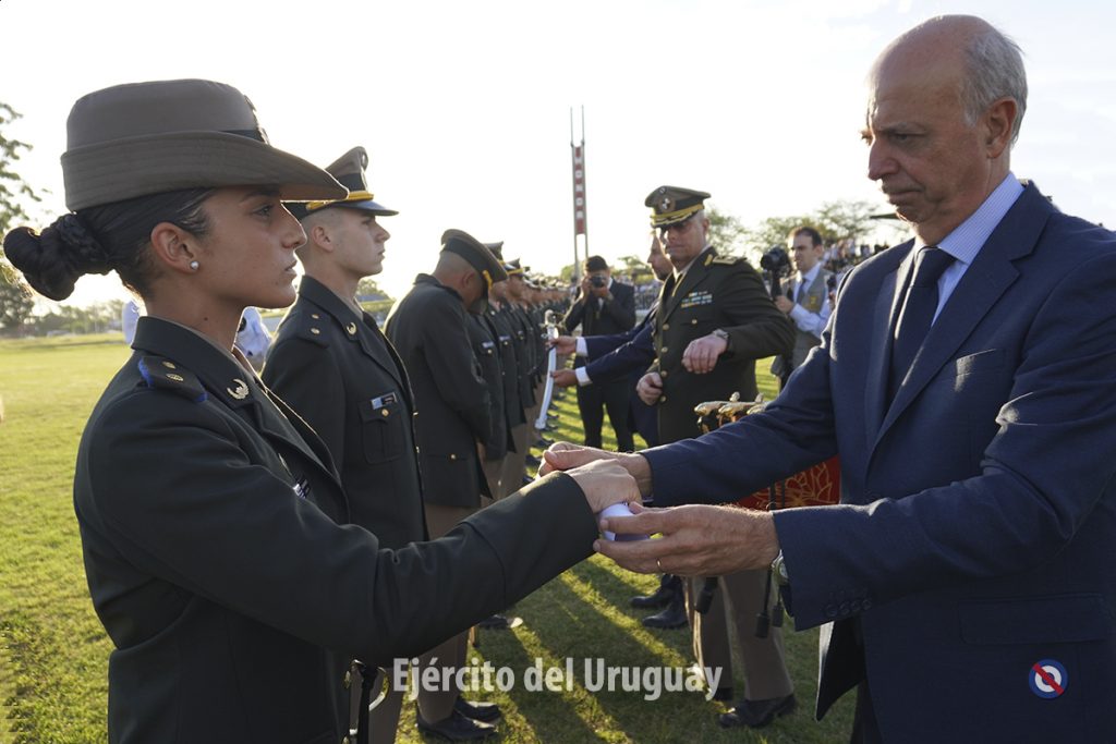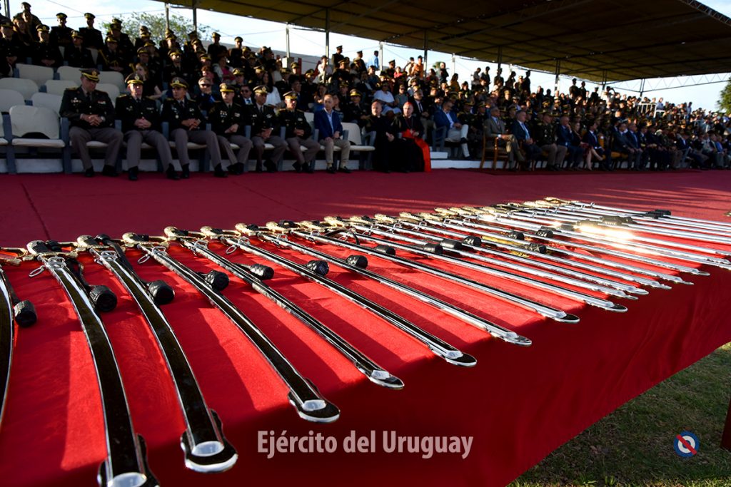 Los 46 Alféreces egresados recibieron por parte del Presidente de la ROU, en su rol de Comandante en Jefe de las Fuerzas Armadas, el sable, símbolo de mando y representación del legado de nuestro máximo héroe, el Gral. José Gervasio Artigas. También le entregaron los despachos por parte del Sr. Ministro de Defensa Nacional, Dr. Javier García.