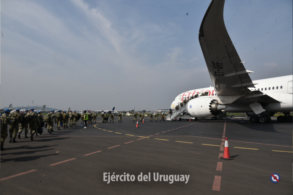 Arribó al Aeropuerto Internacional de Carrasco el 3er vuelo de rotación del Contingente Nacional desplegado en la República Democrática del Congo 🇨🇩, Misión United Nations Mission in the DR Congo – Monusco.