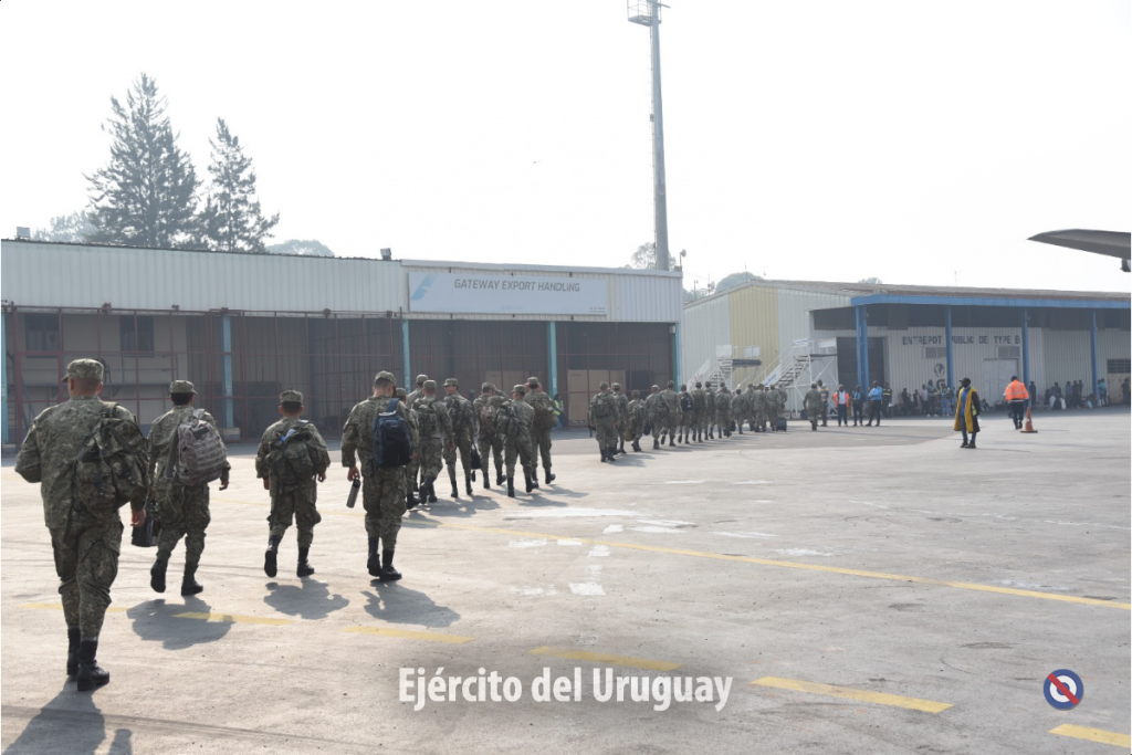 [05:07 h] A su vez, se hace saber que partió el 4to vuelo de rotación desde tierras congoleñas, con 171 efectivos del #EjércitodelUruguay, 2 del Ejército Paraguayo y 7 de la Fuerza Aérea Uruguaya. Así como los inspectores y periodistas que viajaron durante el periodo de rotación del Batallón «Uruguay IV».