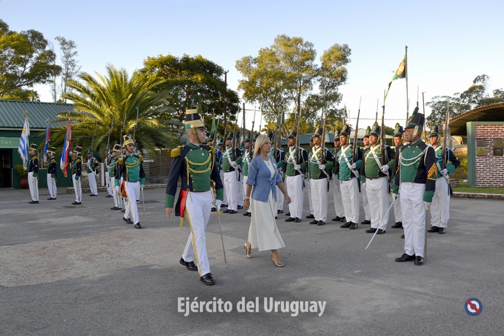 Primeramente, la Sra. Presidente de la Asamblea General, Escribana Beatriz Argimón, acompañada del Sr. Jefe del Batallón, Tte. Cnel. Federico Silva, pasaron revista de los efectivos formados.