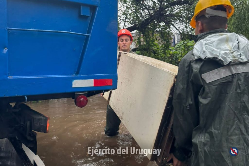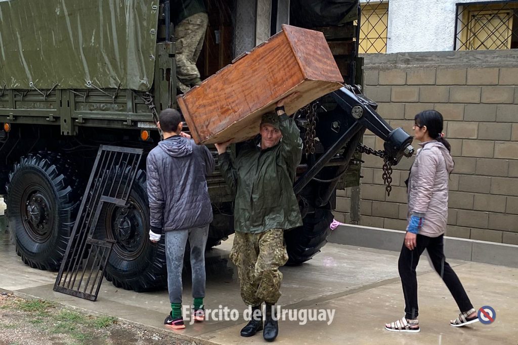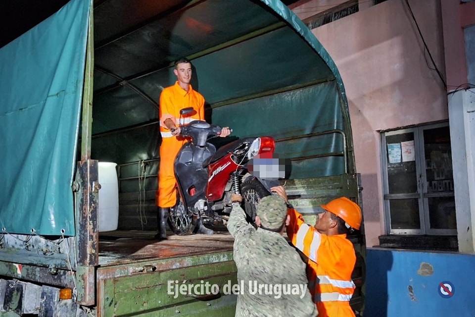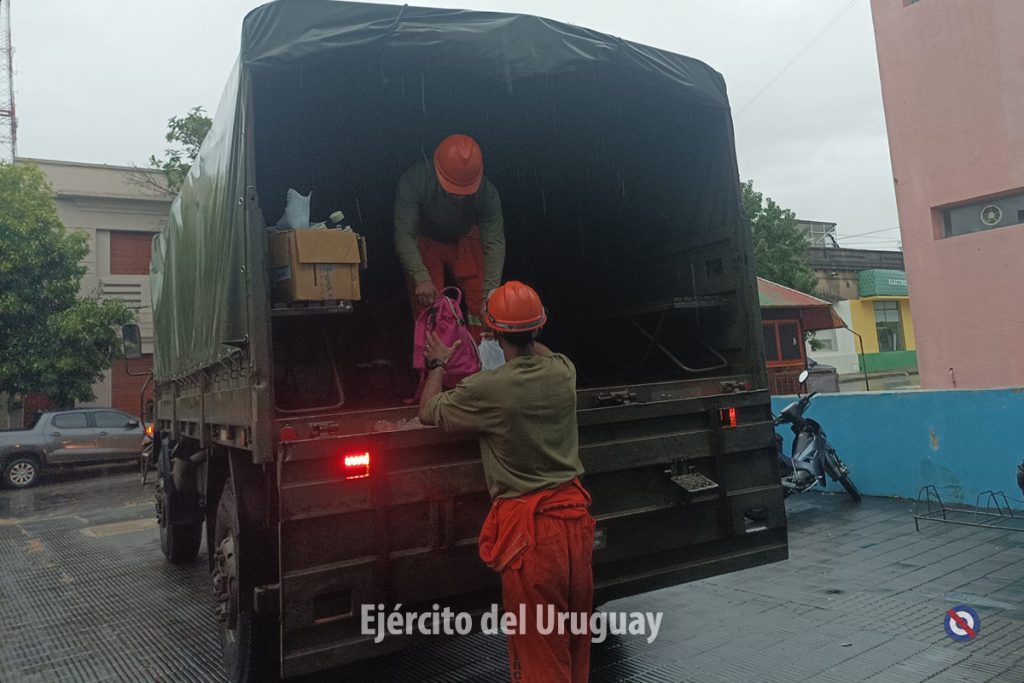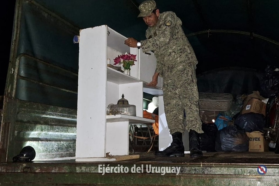 Los efectivos trasladan el mobiliario, pertenencias y animales domésticos de las familias que dejan su hogar en las ciudades de Florida, Rosario y San José de Mayo.