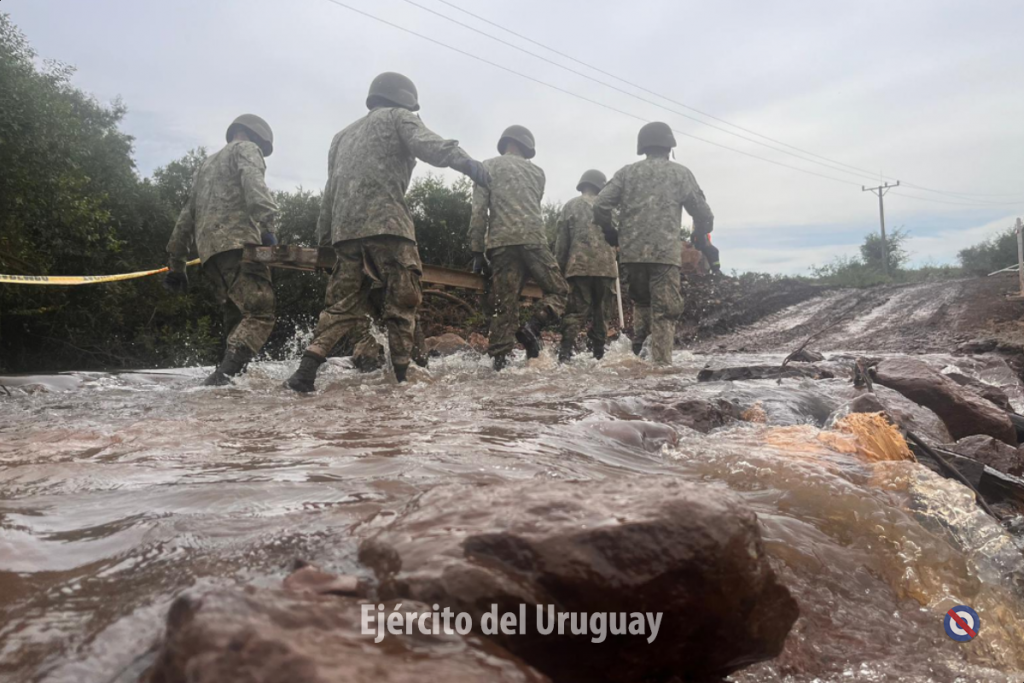 El Ejército Nacional continúa trabajando sin pausa a pesar de las condiciones meteorológicas, para tender una mano a los compatriotas de Paso del Cerro, #Tacuarembó.