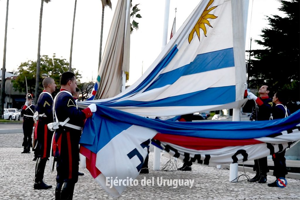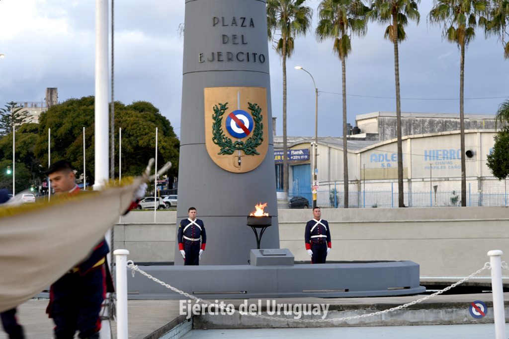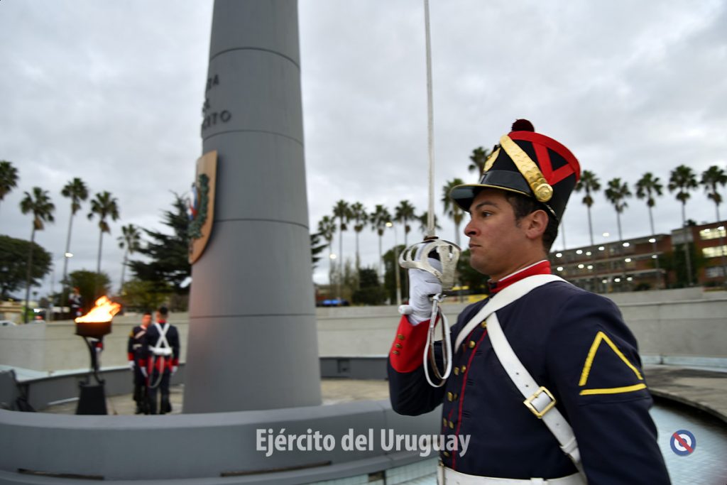 Finalizando con los festejos por el 213° aniversario del Ejército Nacional, se realizó el arriado de Pabellones y apagado de llama votiva, en la Plaza del Ejército.