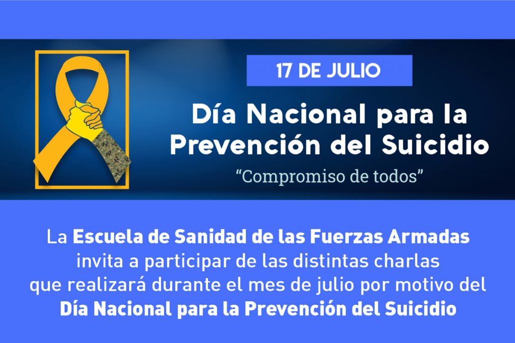 La Escuela de Sanidad de las Fuerzas Armadas, los invita a participar de las distintas charlas que realizará durante el mes de julio por motivo del Día Nacional para la Prevención del Suicidio (17 de julio).
