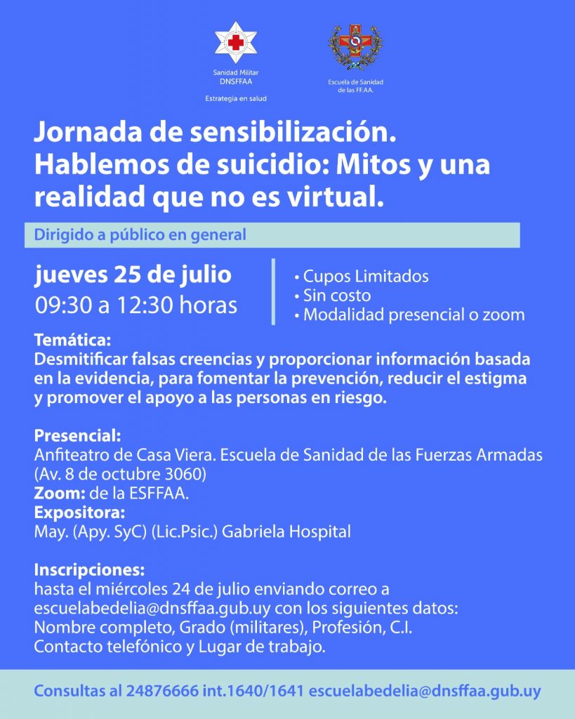 El 17 de julio, se realizó en el Anfiteatro «General José Gervasio Artigas» del Instituto Militar de Estudios Superiores, la charla referente a la concientización sobre la problemática del suicidio.