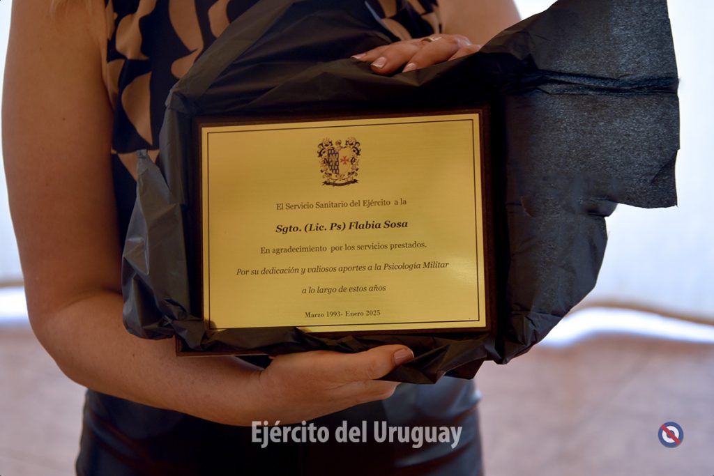 Esta instancia contó con la presencia del Comandante del Comando de Apoyo Logístico del Ejército, Director y Subdirector actuales del SSE y exdirectores, quienes dieron el marco justo para realizar el reconocimiento a la Jefe Territorial Psicológica del Ámbito Ejército, Sgto. (Lic. Ps.) Flabia Sosa quien pasará a situación de retiro obligatorio en enero de 2025, luego de computar 32 años de servicio, dedicación y valiosos aportes a la Psicología Militar.