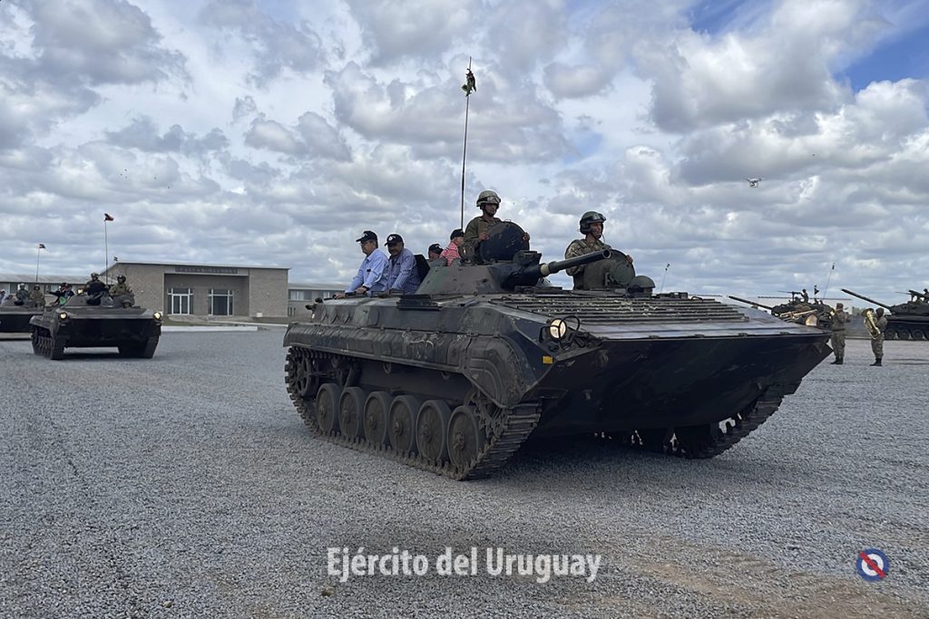 Finalizando el acto, la Fuerza de Parada desfiló a pie y embarcada en Tanques y Vehículos de Combate de Infantería M1, rindiendo honores a las autoridades.