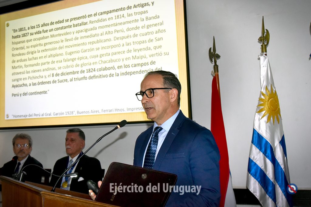«Sin dudas que la Batalla de Ayacucho es un hito extremadamente importante para los hermanos peruanos, donde enlistó las filas del Ejército de Perú, el Teniente Coronel Eugenio Garzón y otros Orientales», expresó el Cnel. Sarauz.