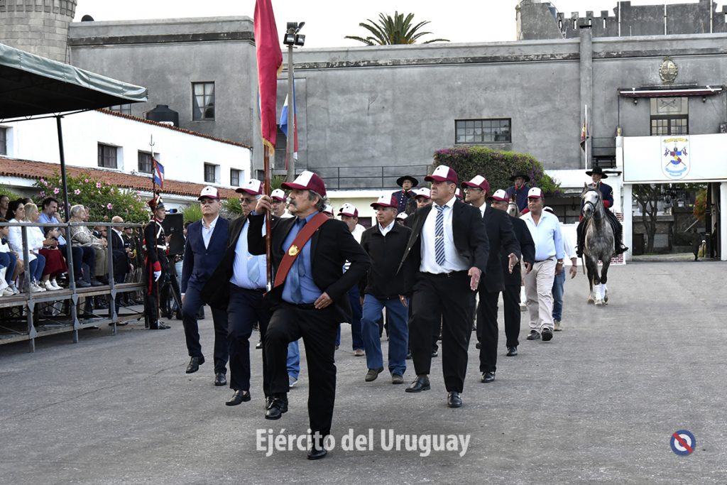 Desfilaron: un Blandengue Moreno representando a «Ansina», junto a un caballo moro y un perro cimarrón, única raza canina originaria de nuestro país. Charanga «Grito de Asencio», con 106 años de historia, única en el mundo con capacidad técnica para ejecutar en los tres aires de marcha. Banderas y Escoltas de la Unidad. Cte. de la Fuerza de Parada y Desfile, el 2do Jefe del Regimiento, Tte. Cnel. Gustavo Martínez, seguido de su Estado Mayor. 2 Escuadrones de Jinetes, encabezados por sus Comandantes de Escuadrón. Sección de equinos moros, última cabalgadura que reclamó nuestro prócer, el Gral. José Gervasio Artigas. Agrupamiento de retirados.